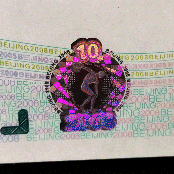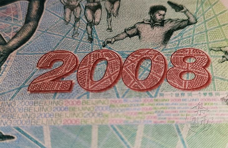 【背面图案】主景为古希腊雕塑“掷铁饼者”、运动员群图及“2008”字样。