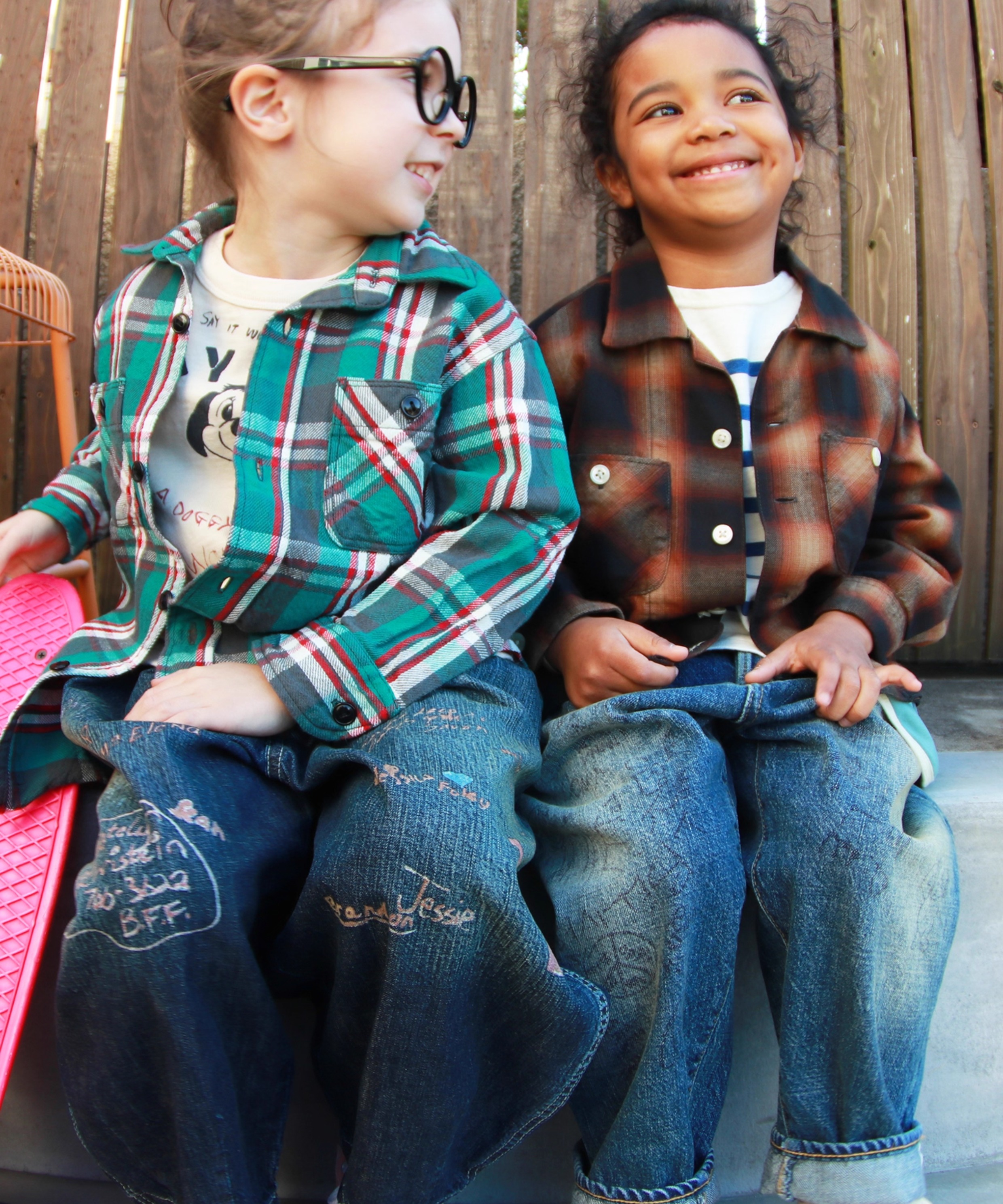 日本DD童装 DENIM DUNGAREE 丹宁牛仔 AIR 涂鸦休闲长裤