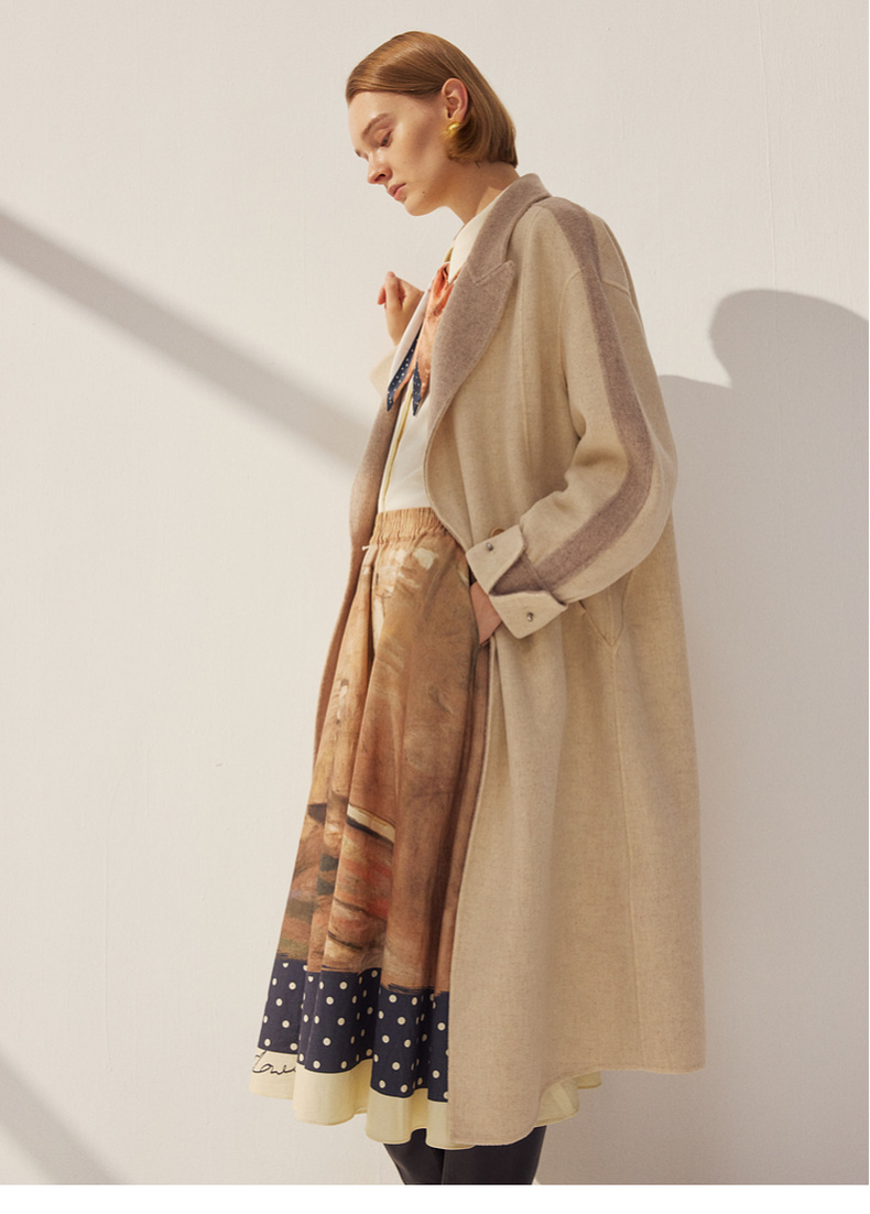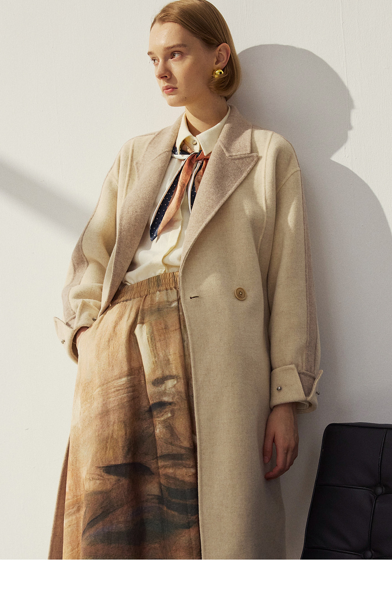 谜底羊毛呢长大衣长袖2025年冬季新品正反异色翻驳领女254MD1480