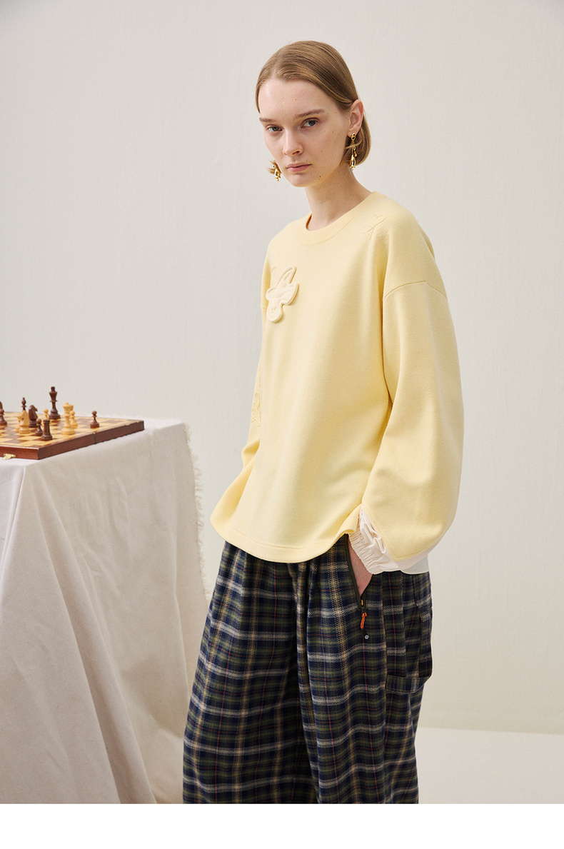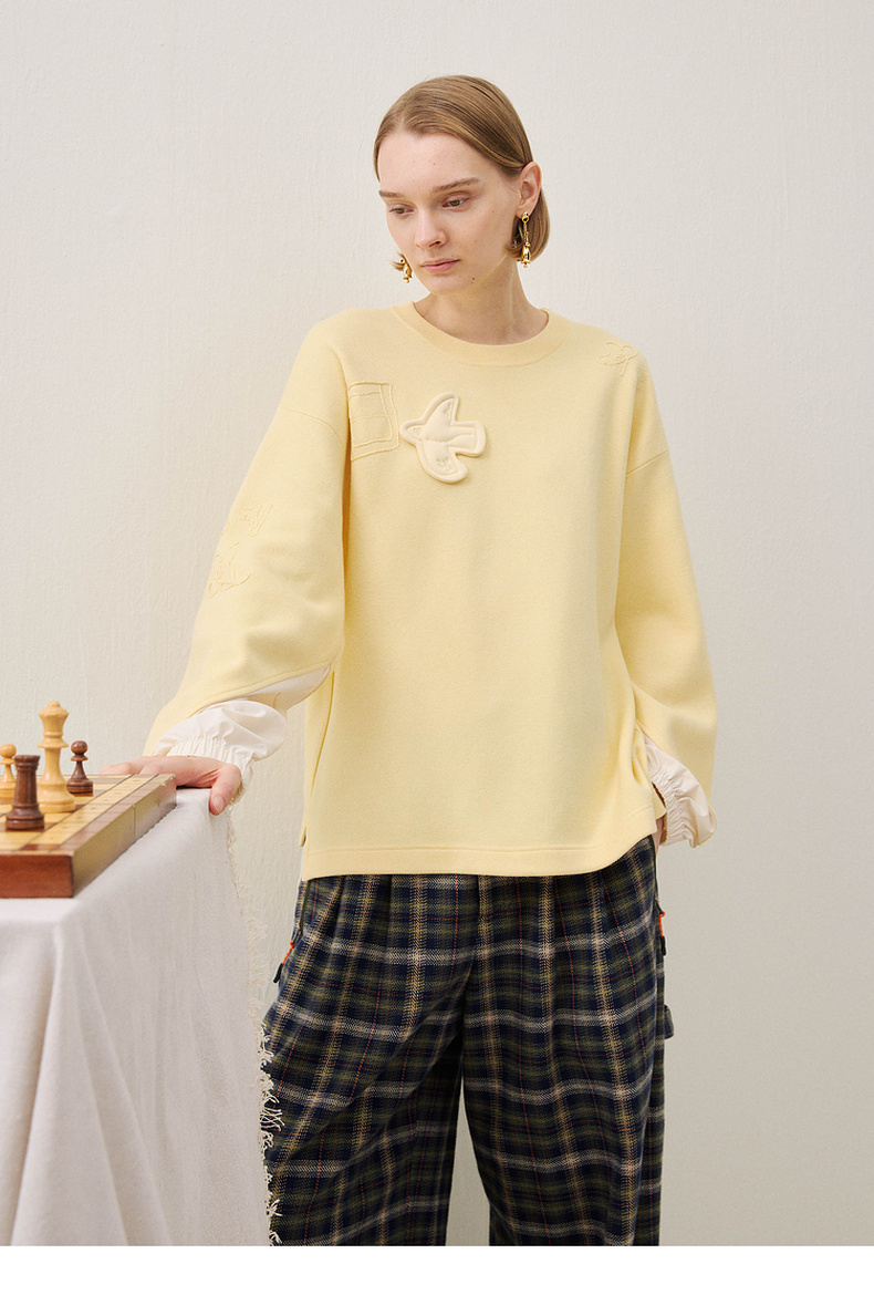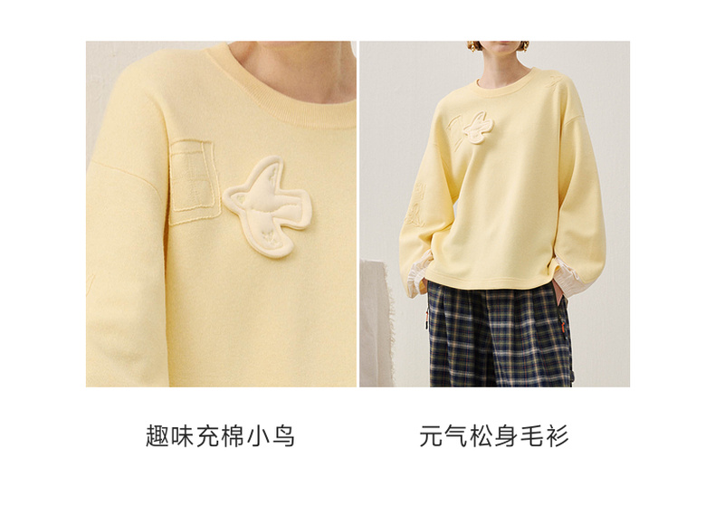 谜底套头针织衫长袖2025年冬季新品立体绣花小鸟设计女254MZ1883