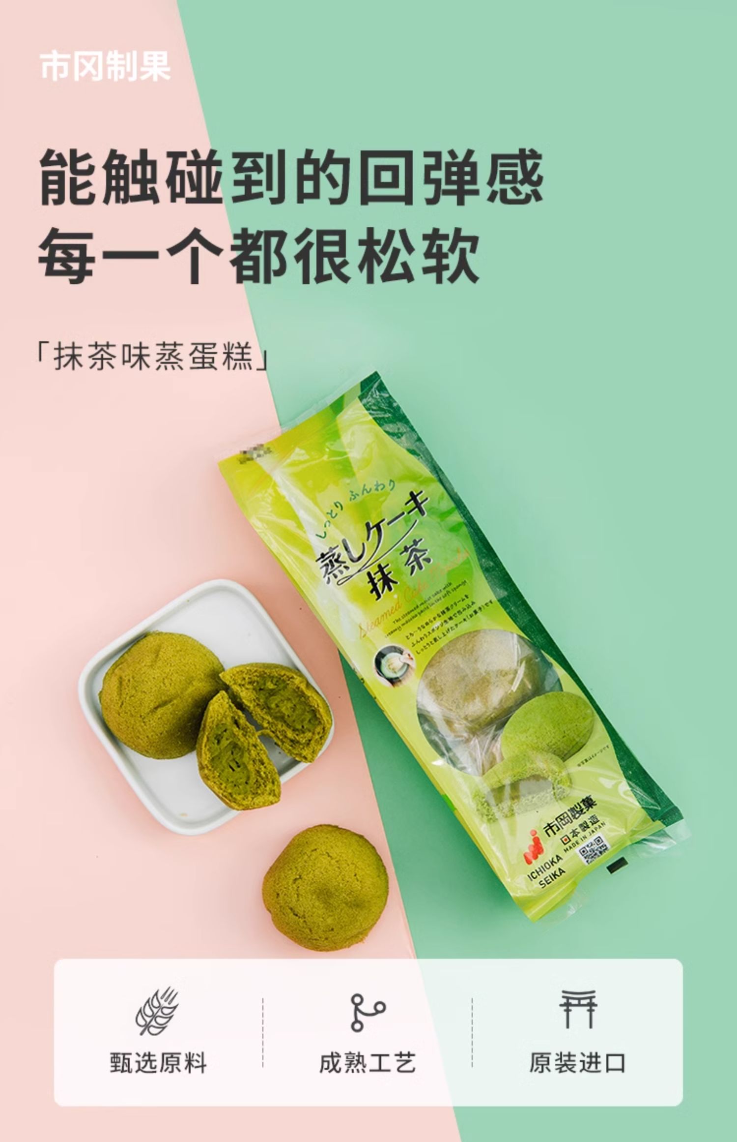 市冈 抹茶味夹心蒸蛋糕