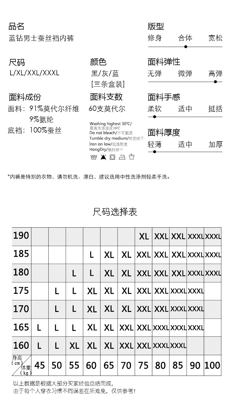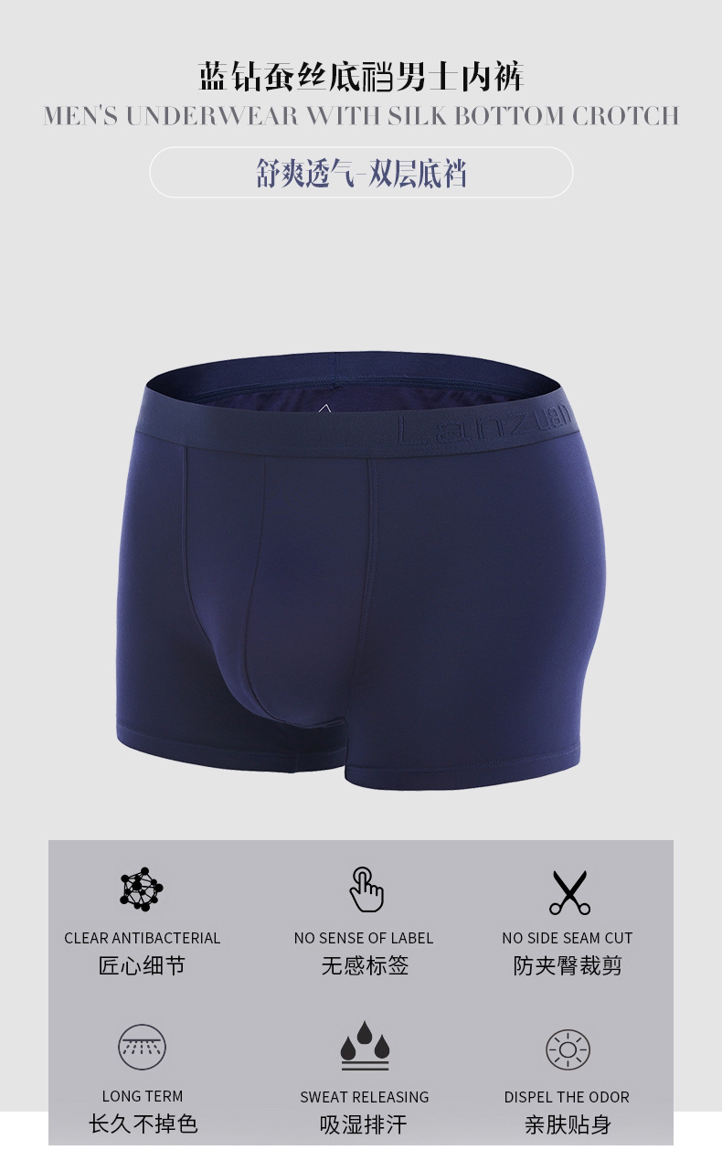 【日本检品】高端男士蚕丝裆内裤(3条装) 黑+灰+蓝