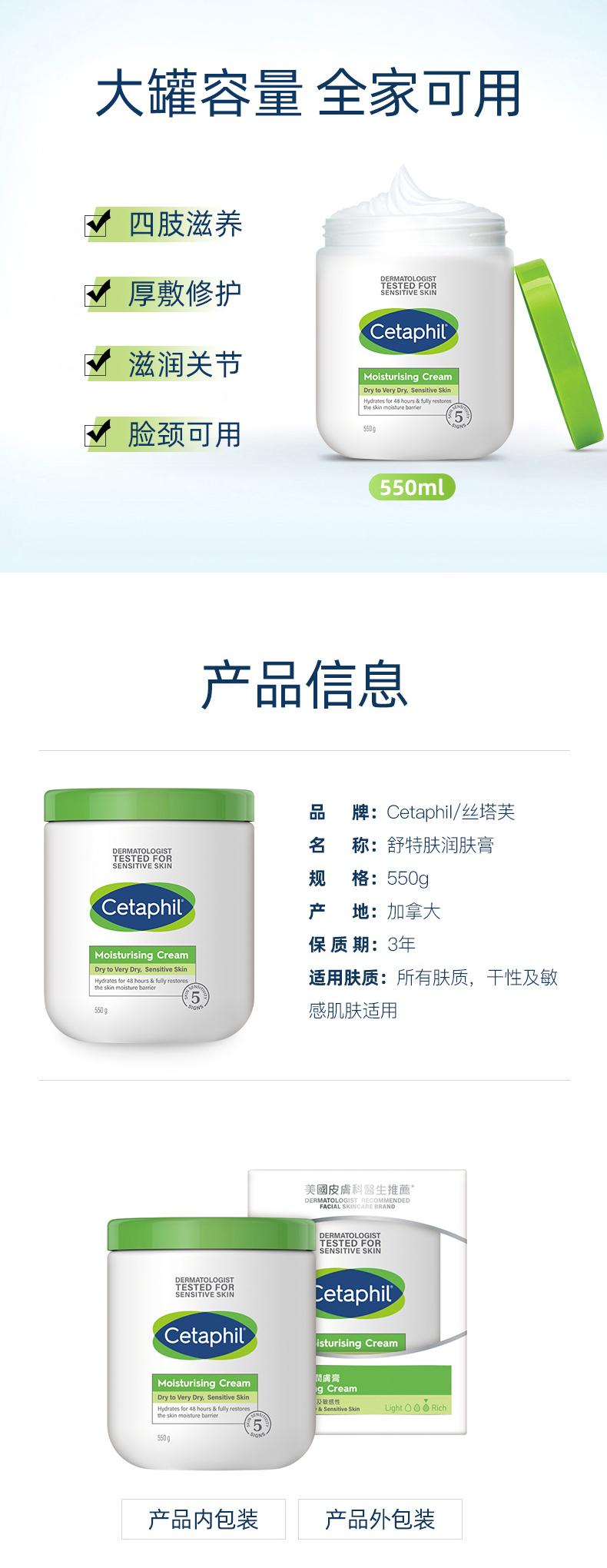 丝塔芙Cetaphil 大白罐身体乳润肤膏面霜 550g
