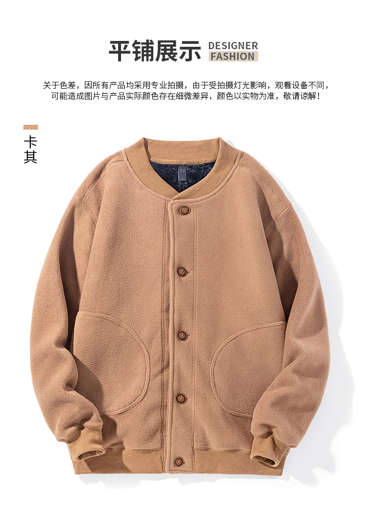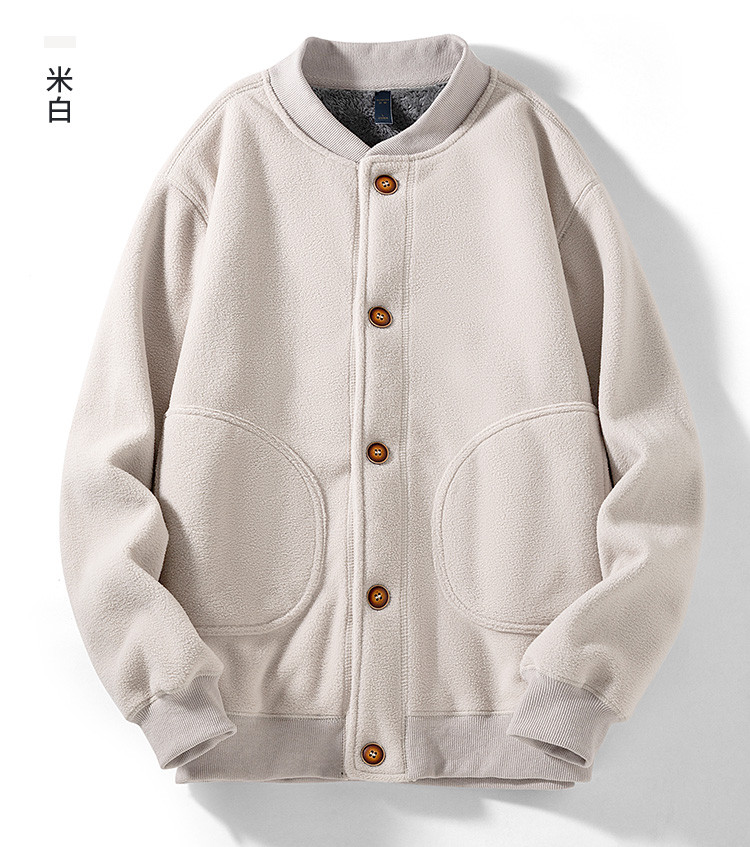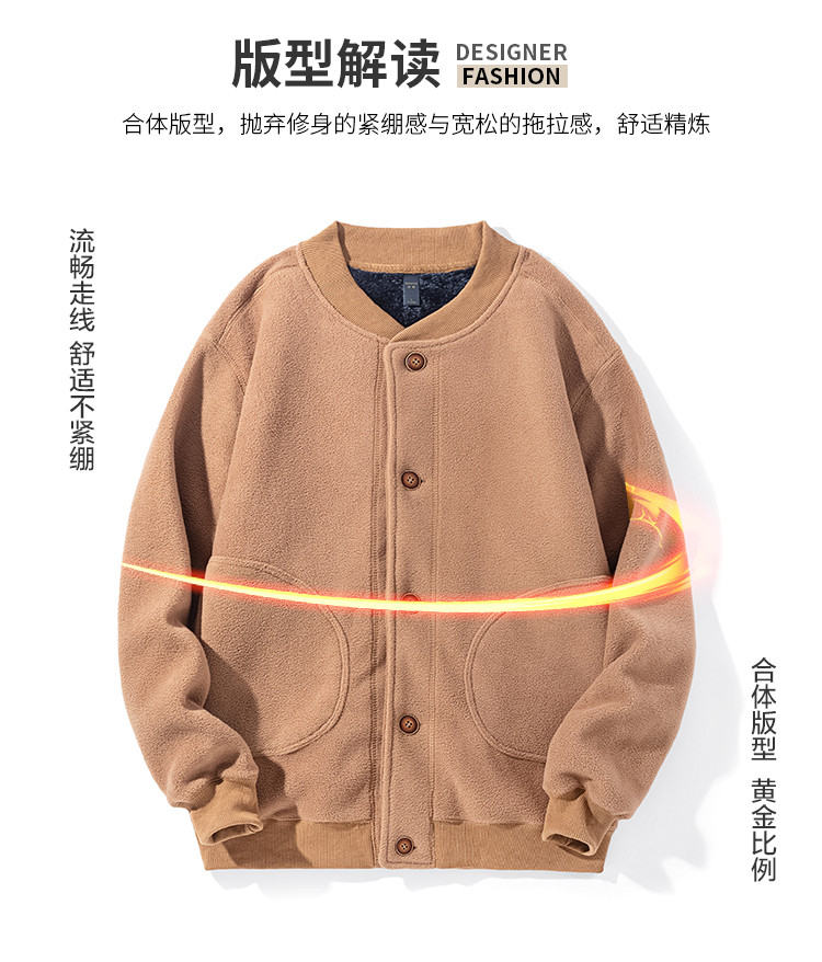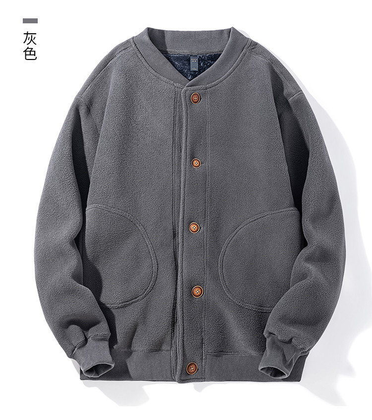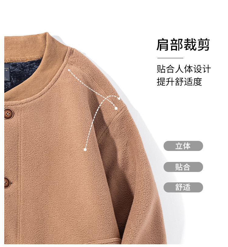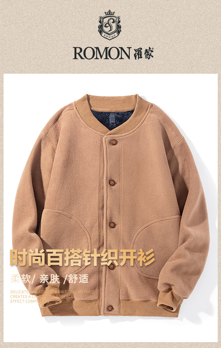 【加绒加厚】罗蒙秋冬摇粒绒外套男针织开衫外套男加绒外套男士外套抓绒衣
