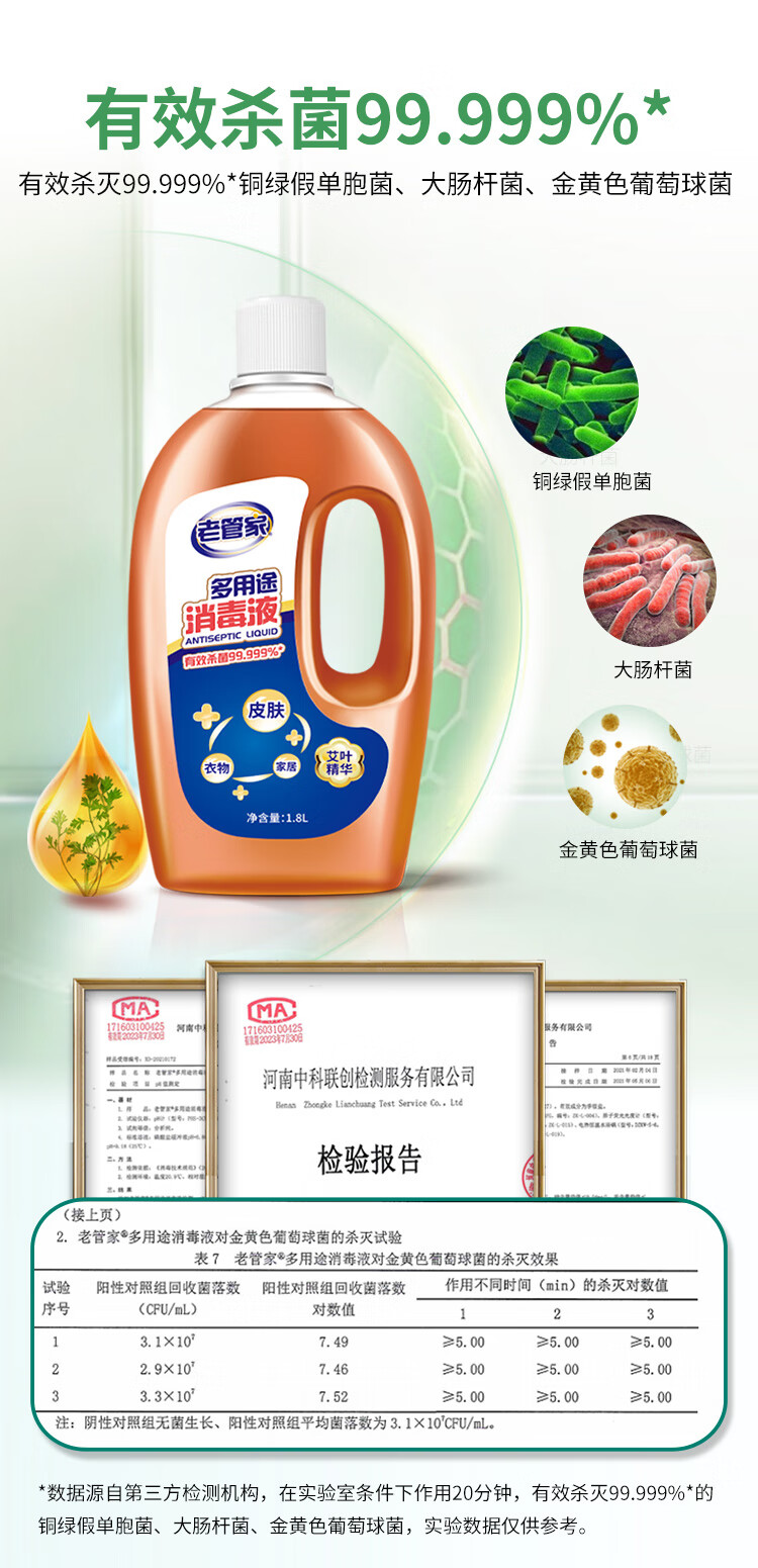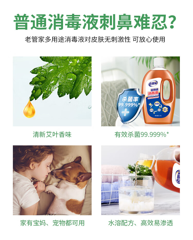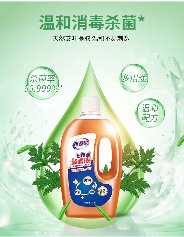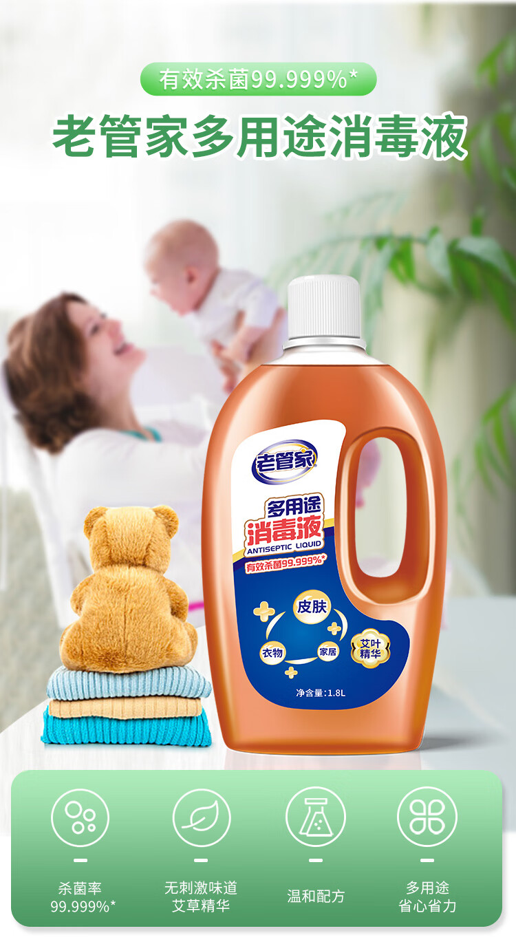 【自营】 老管家 多用途消毒液 高浓度 艾叶配方 1.8L/瓶