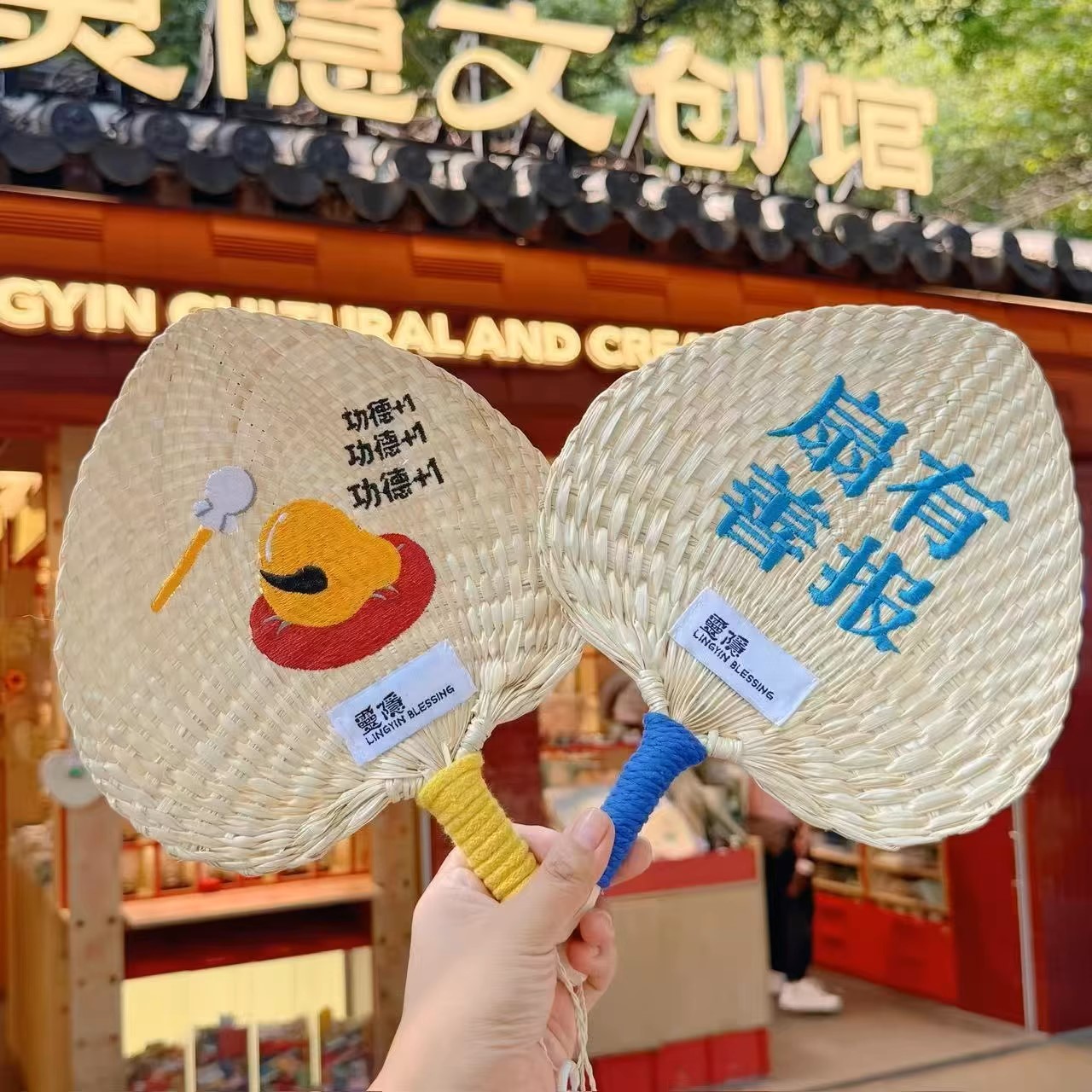 杭州灵隐文创夏日蒲扇扇有善报功德夏天耐用手摇佛系蒲扇手摇芭蕉扇
