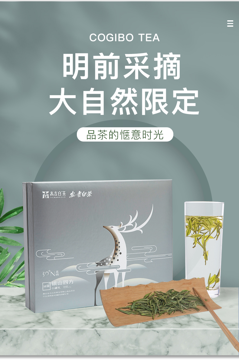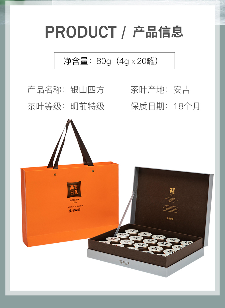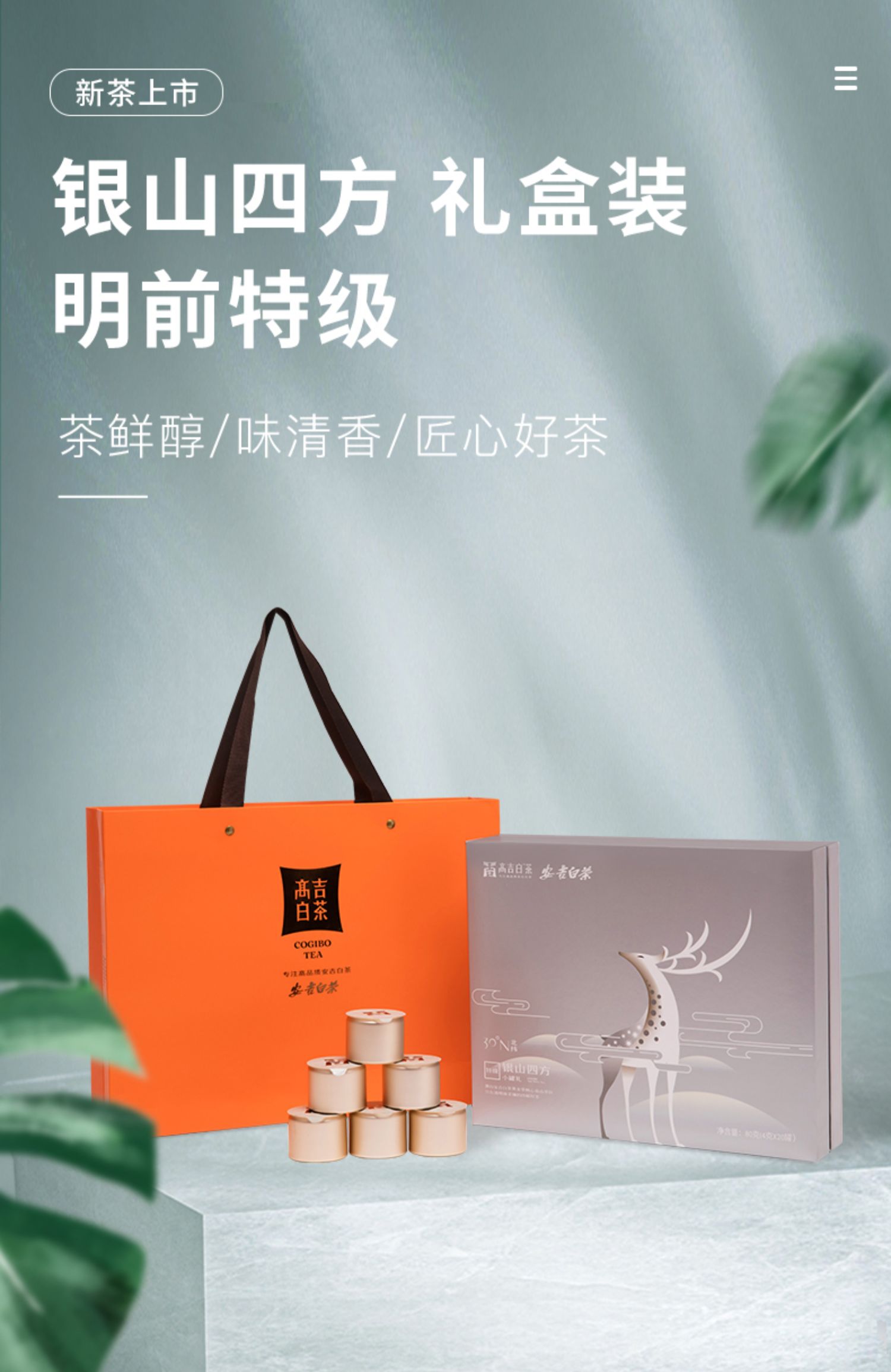 【2023年新茶】高吉白 特级安吉白茶 明前精品绿茶 银山四方礼盒 80g/盒(天猫同款)
