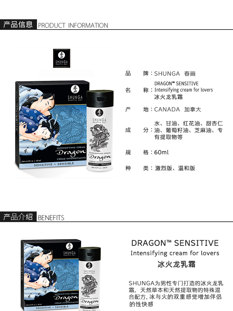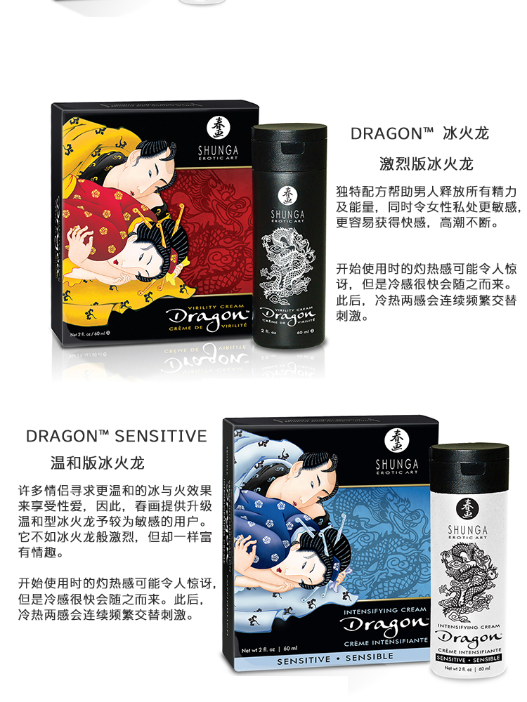 加拿大原装进口SHUNGA春画 冰火龙乳霜 男用猛龙乳霜 可口爱 Dragon™ cream