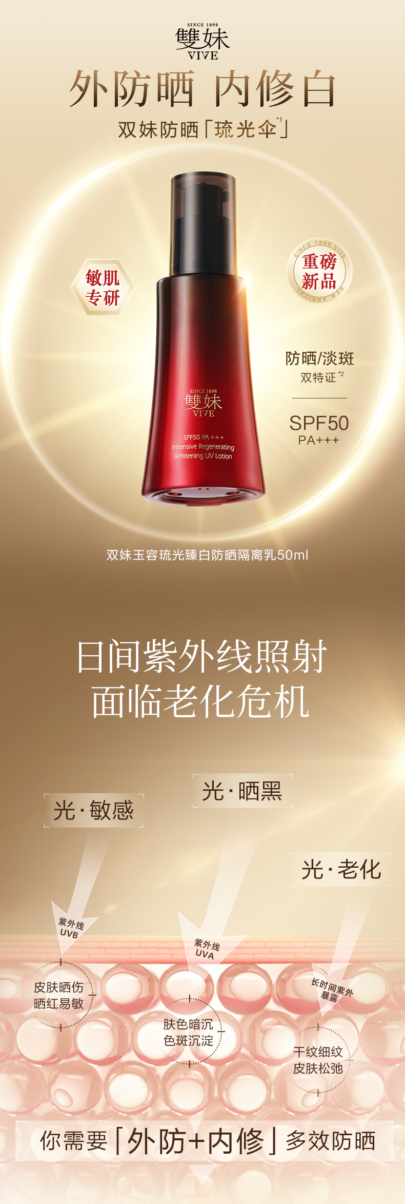 双妹玉容琉光臻白防晒隔离乳50ml+5ml*10