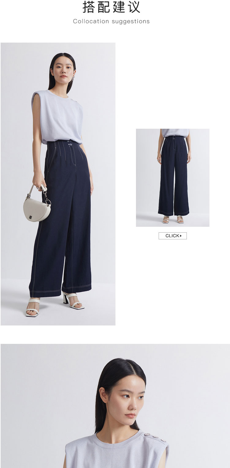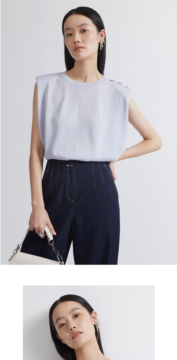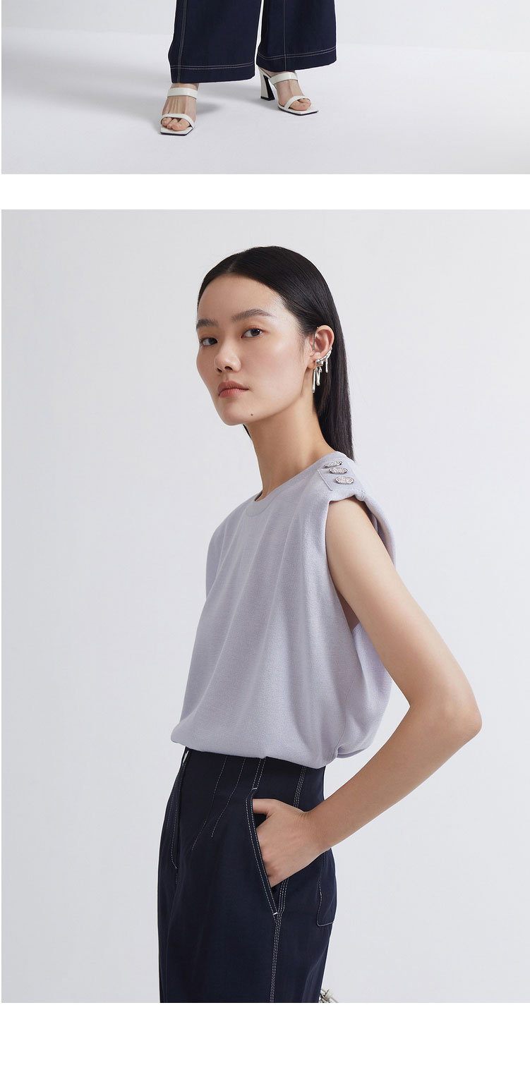 INSUN恩裳2022夏新品垫肩造型感简约建筑廓形时尚淡紫色毛织衫9C32206046
