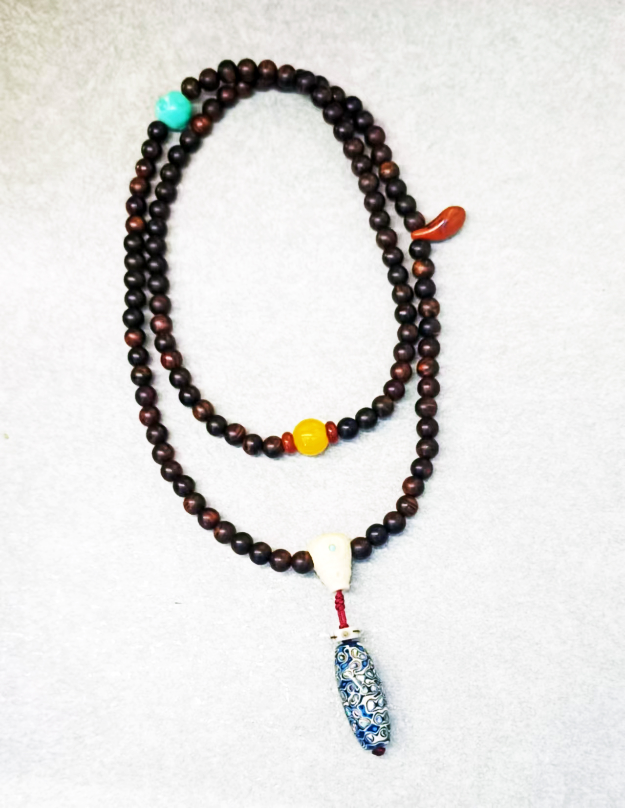 配饰:松石、黄玛瑙、牛骨、南红、藏银、大漆天珠