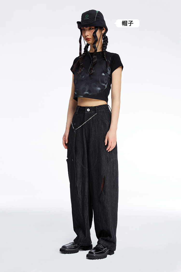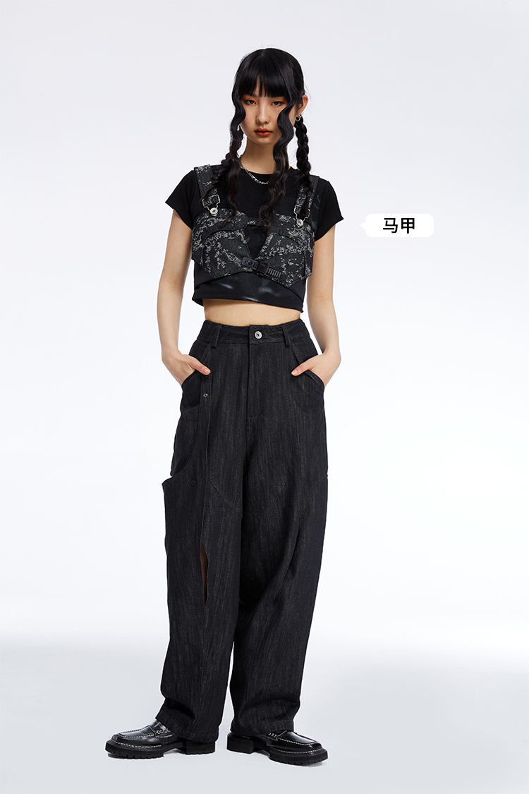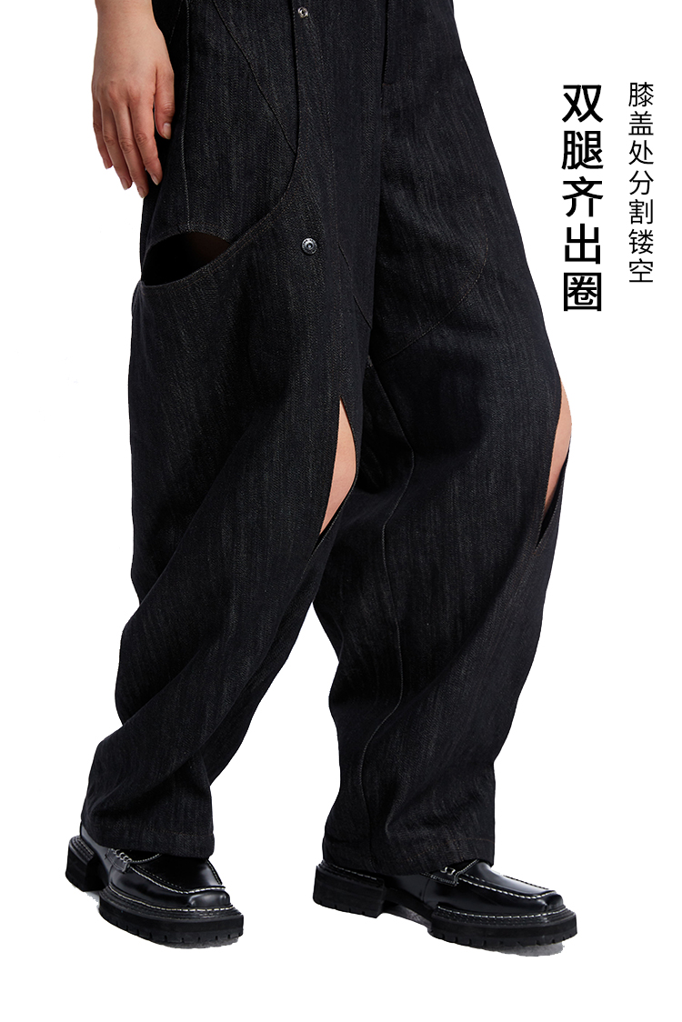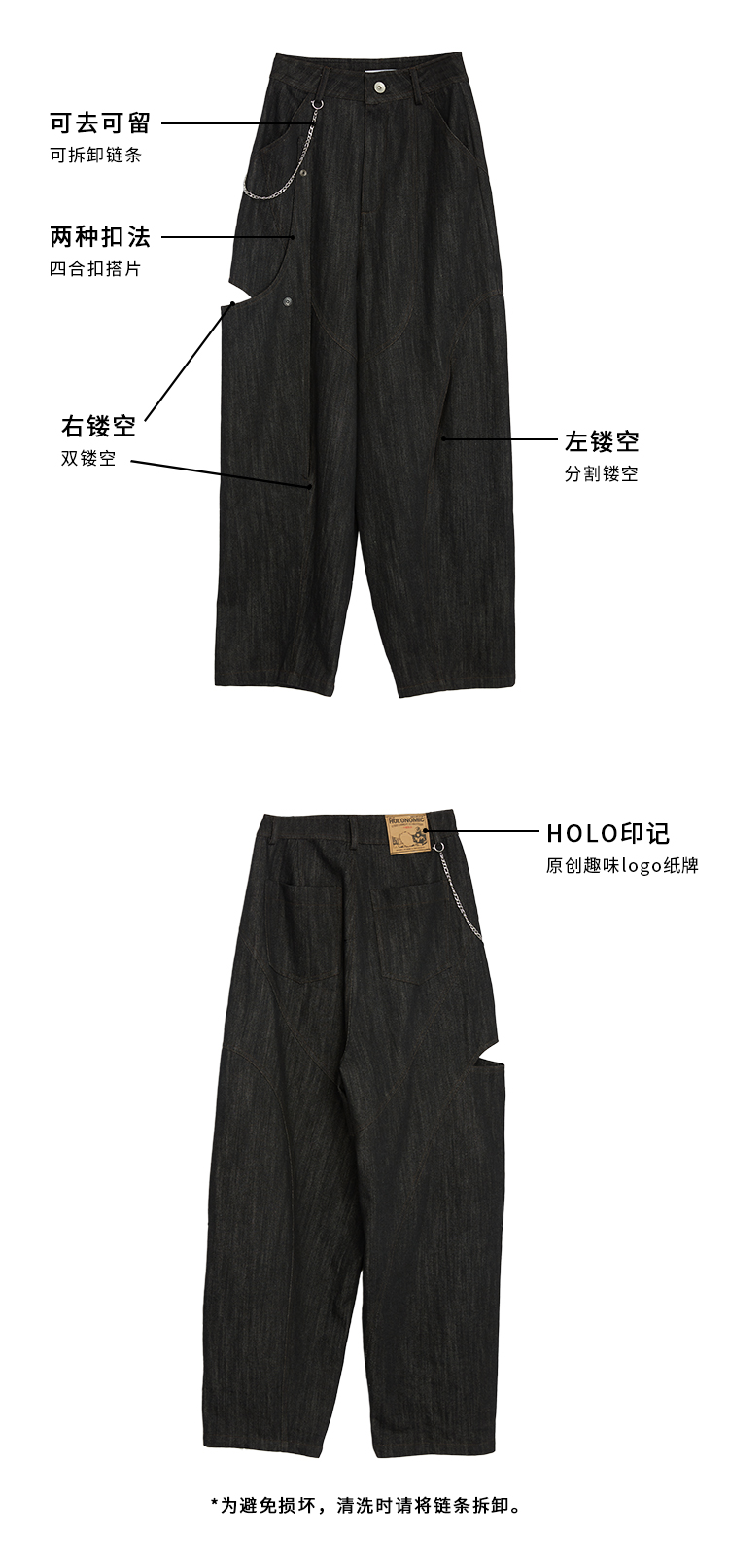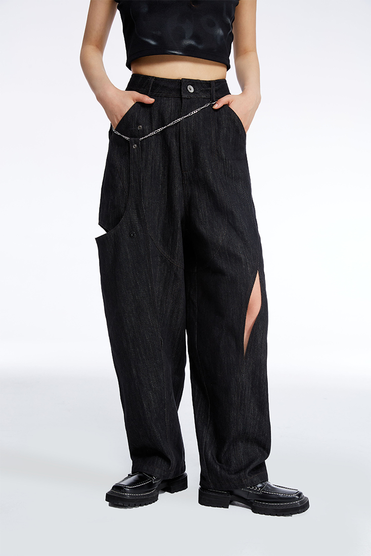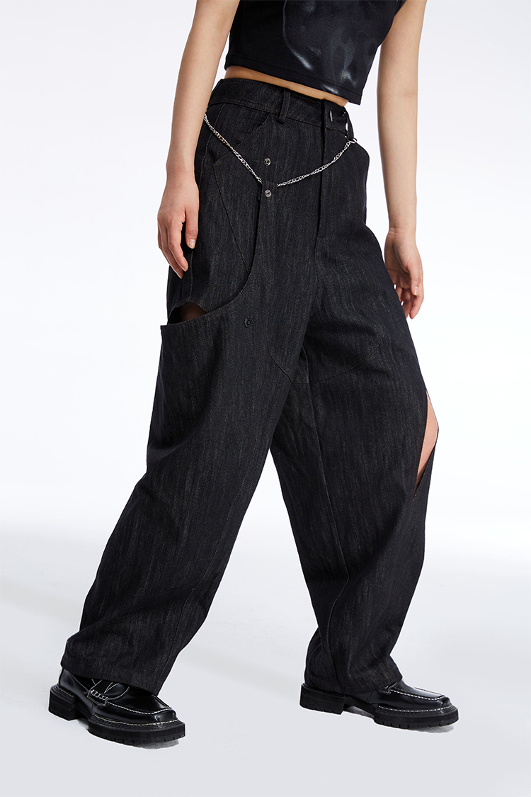 HOLONOMIC 原创不规则镂空分割链条设计感小众宽松牛仔阔腿裤
