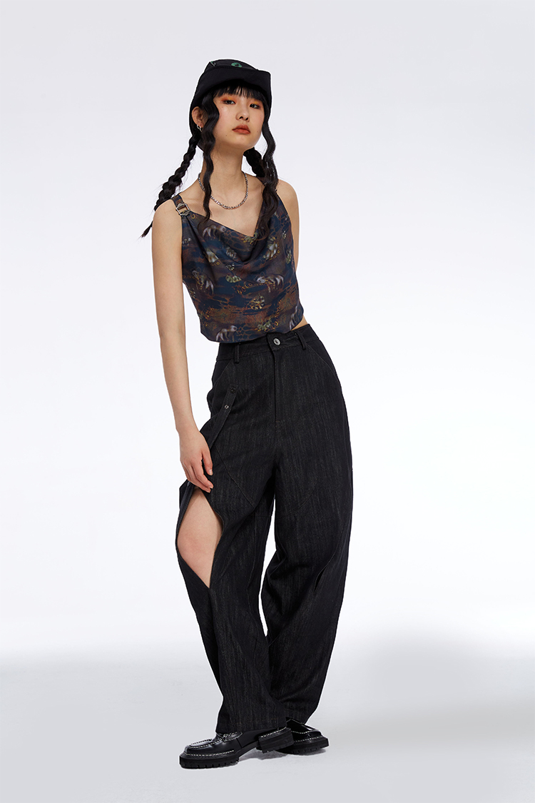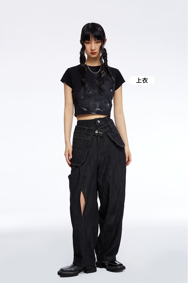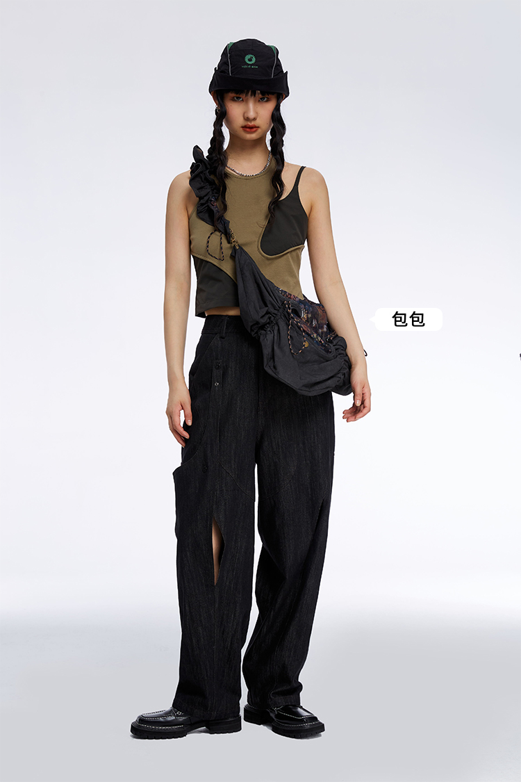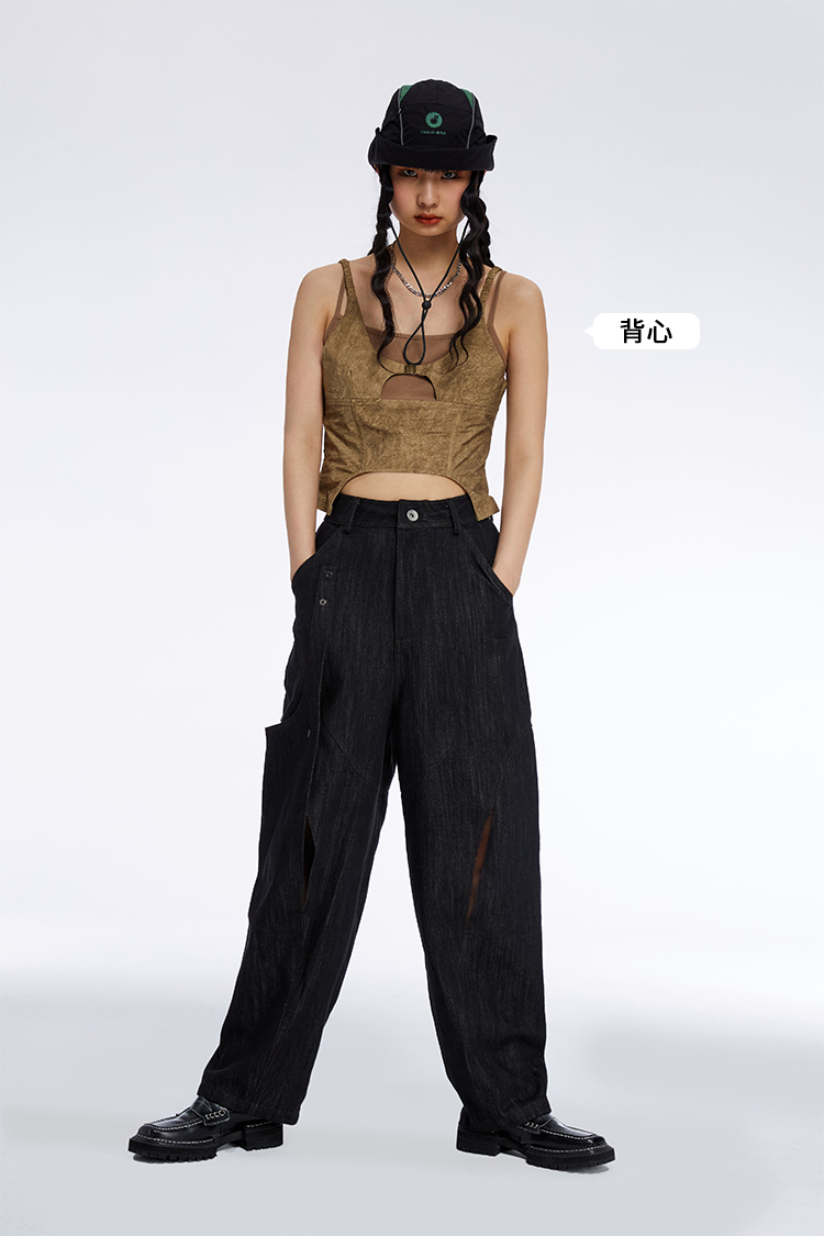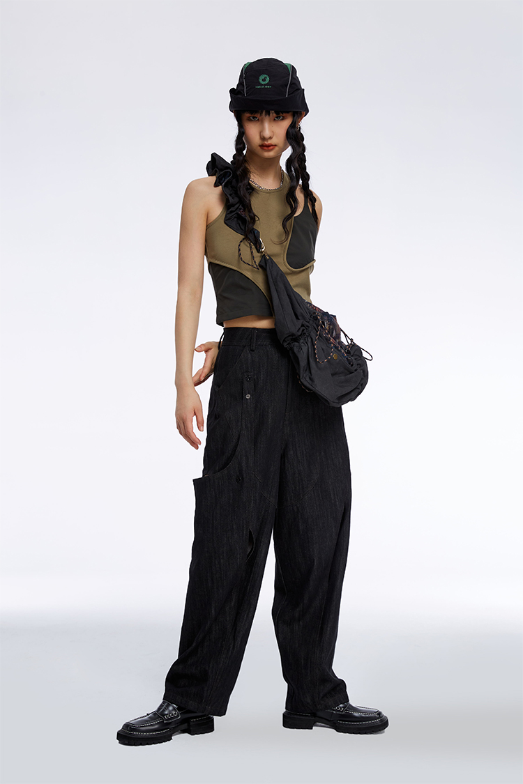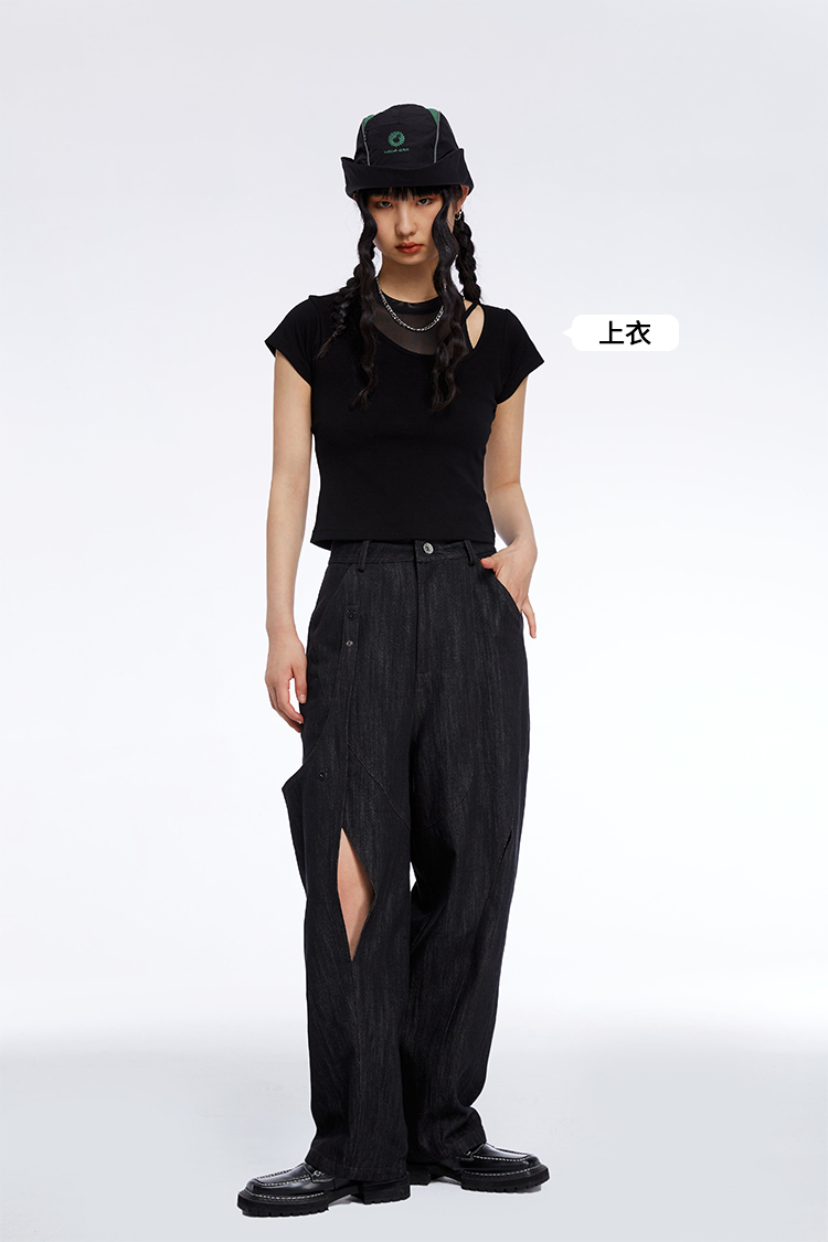 HOLONOMIC 原创不规则镂空分割链条设计感小众宽松牛仔阔腿裤