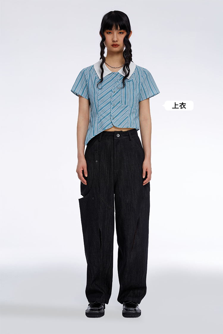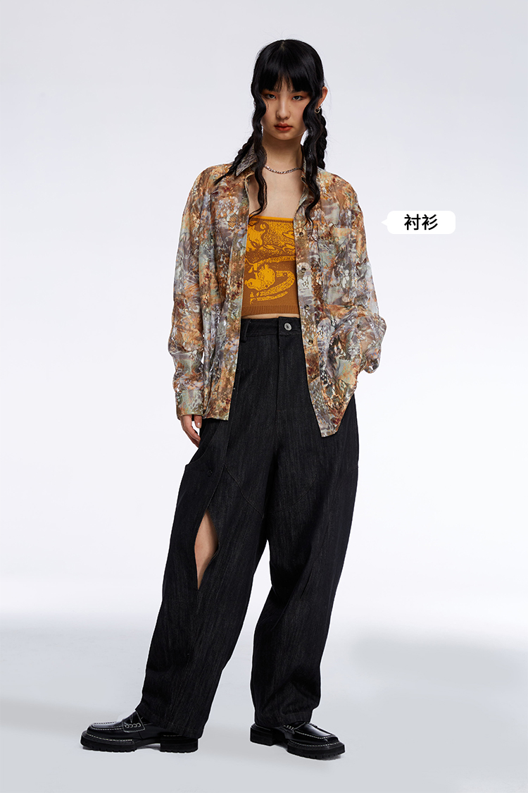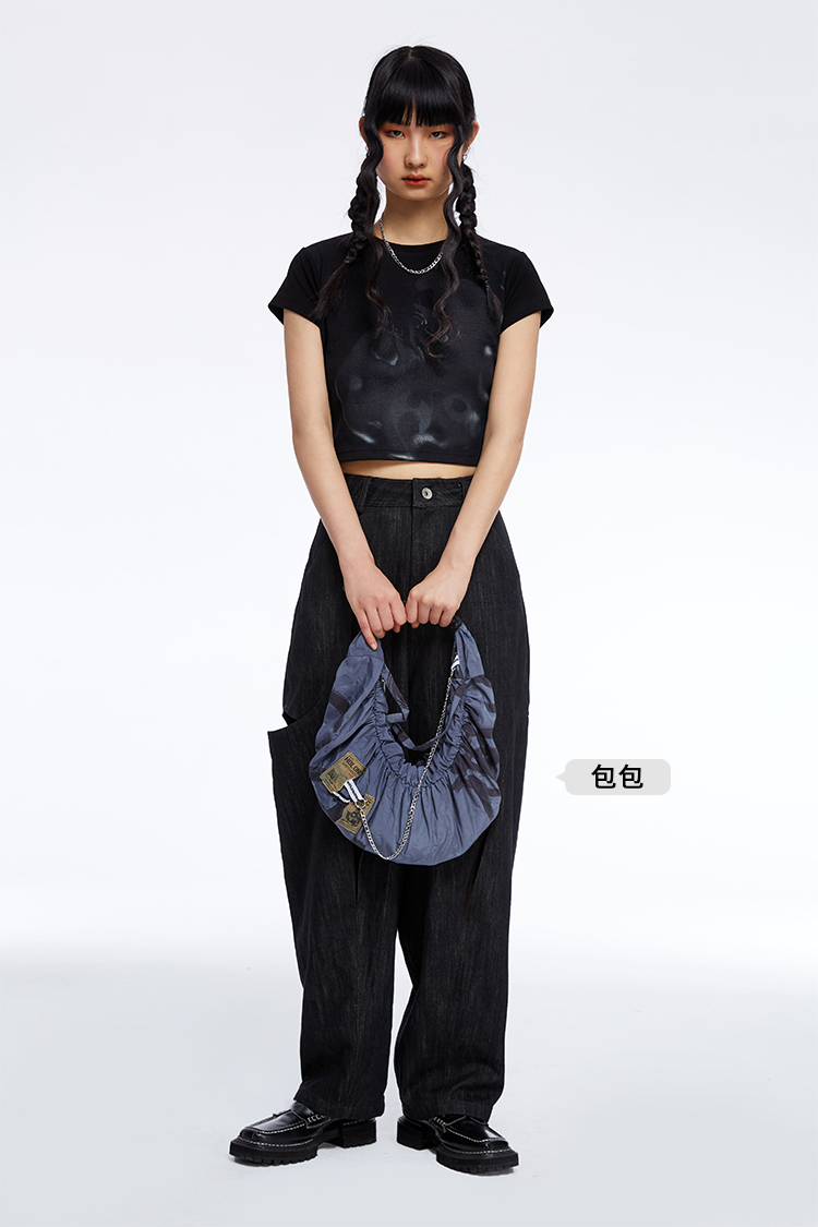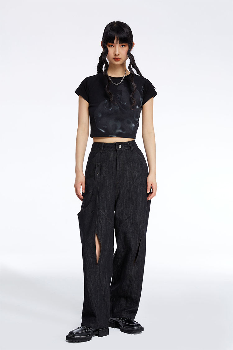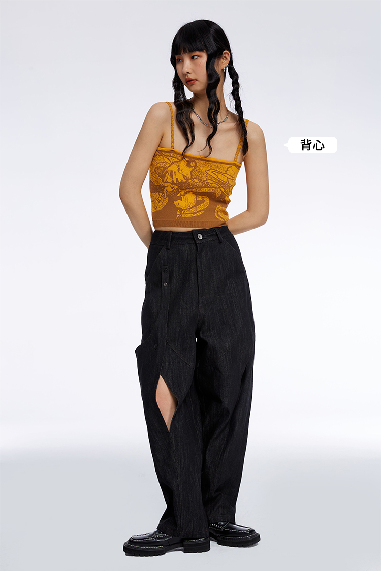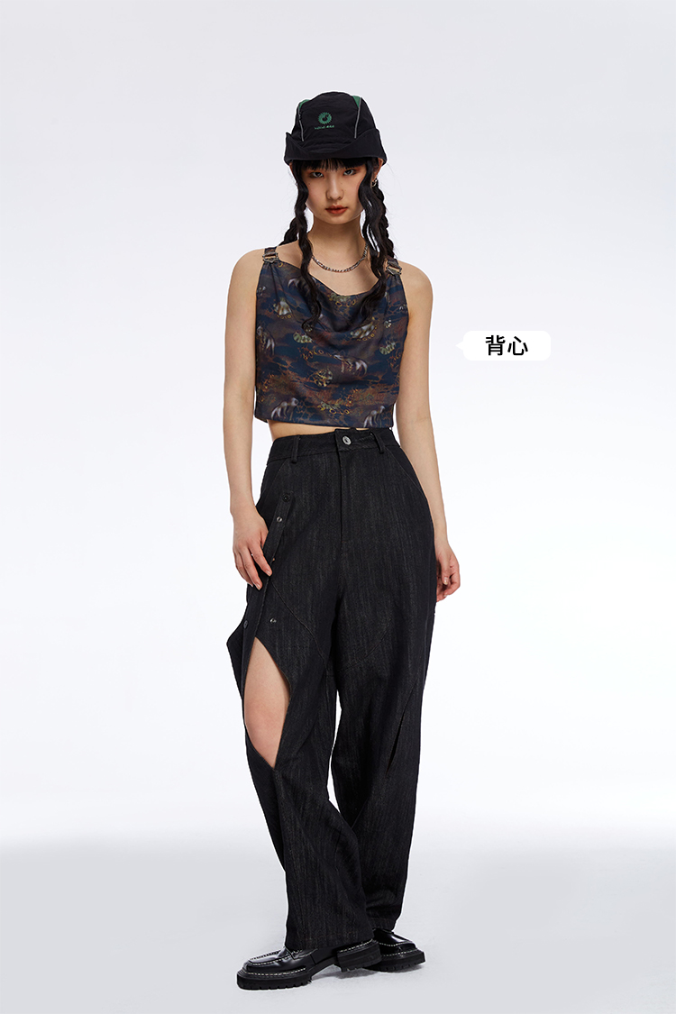 HOLONOMIC 原创不规则镂空分割链条设计感小众宽松牛仔阔腿裤