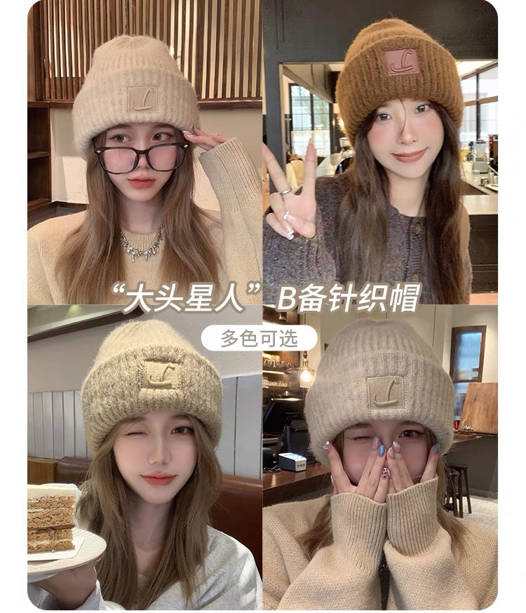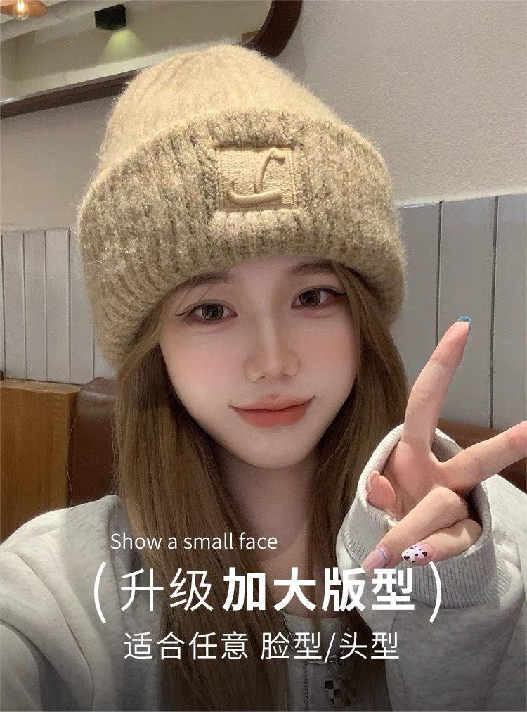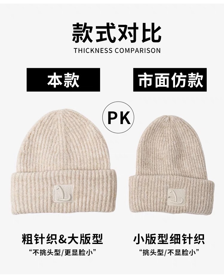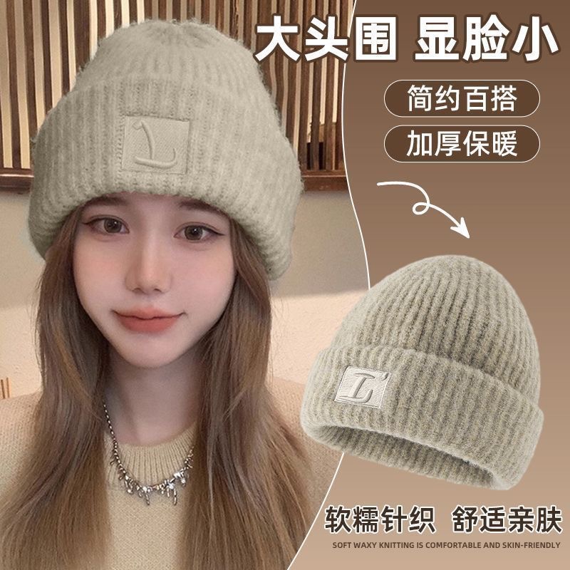 【软软糯糯!奶乎乎针织帽!】大头围粗毛线帽子 女秋冬季宽松保暖堆堆冷帽 大脸显脸小针织护耳帽