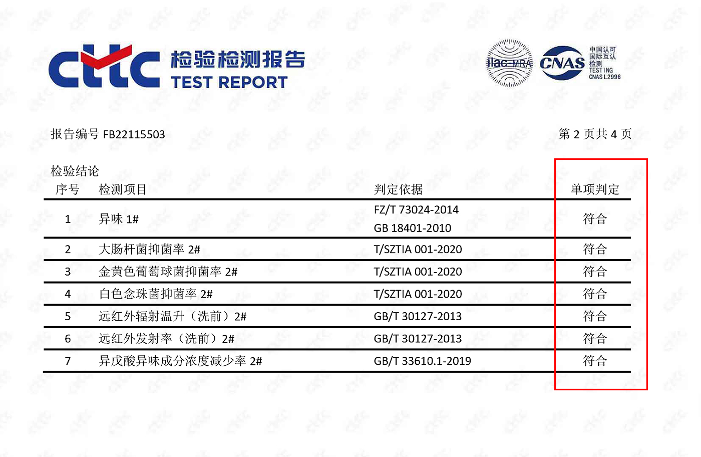 即使洗涤100次, 它的抑菌功效仍达到5A级标准。