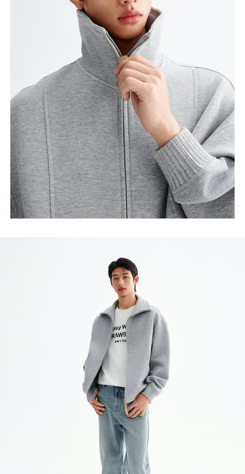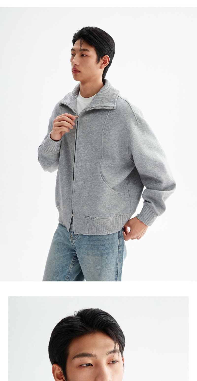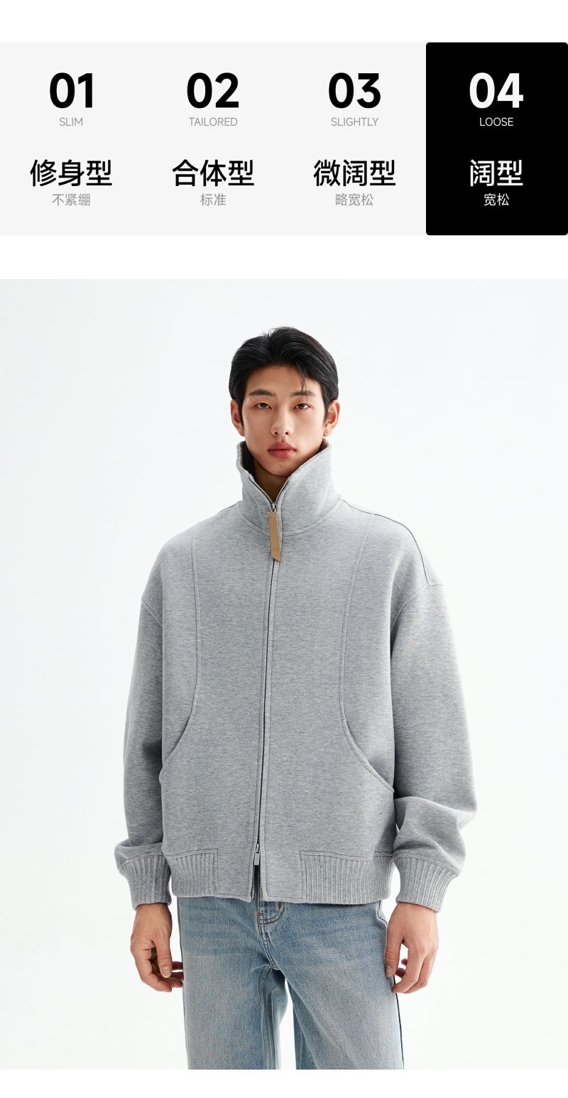 CHINISM赤尘 仿毛织空气层灰色开衫卫衣男春季翻领男士拉链外套