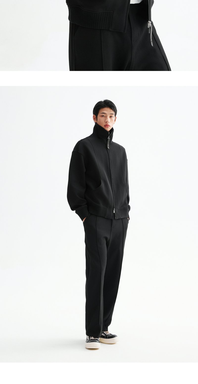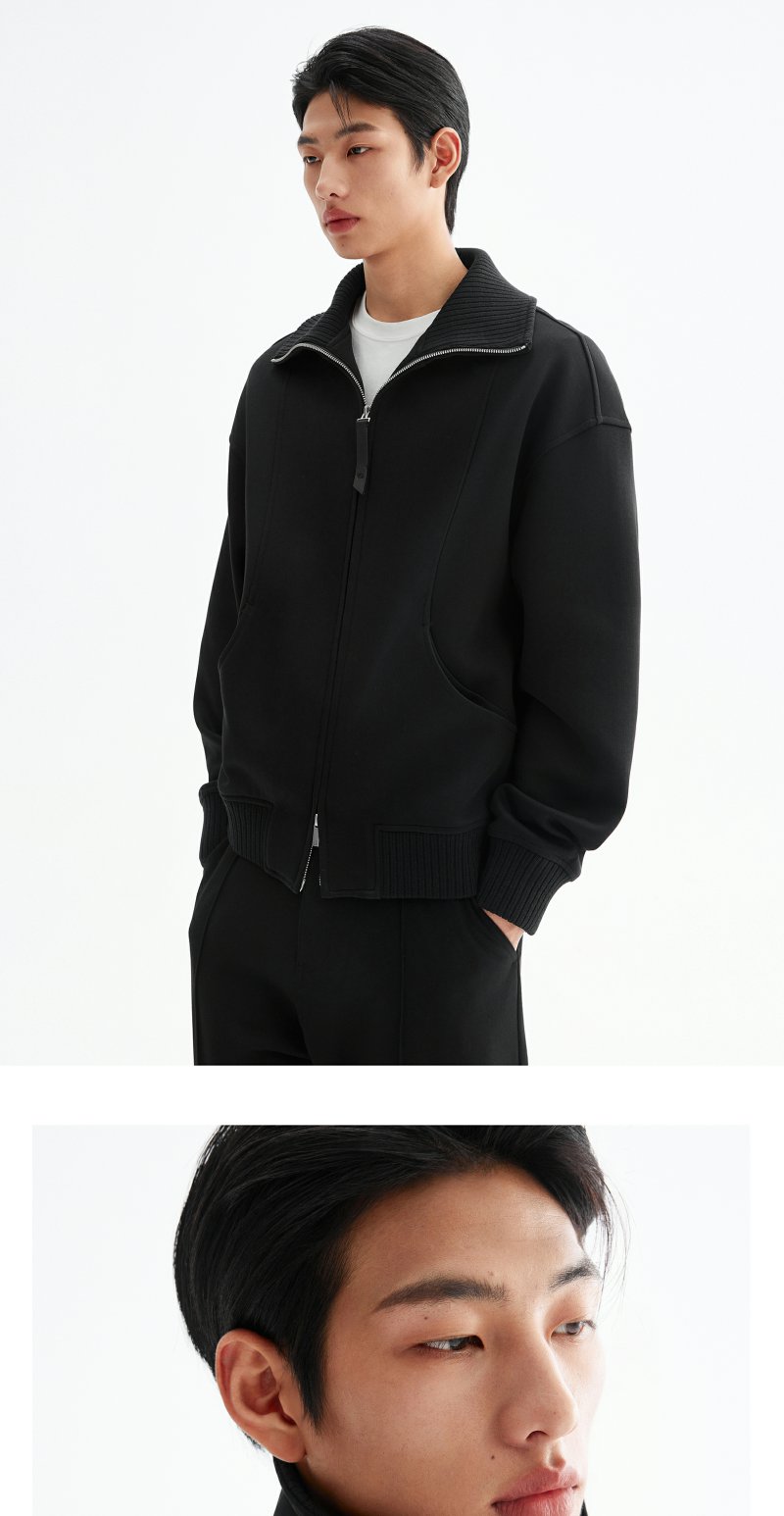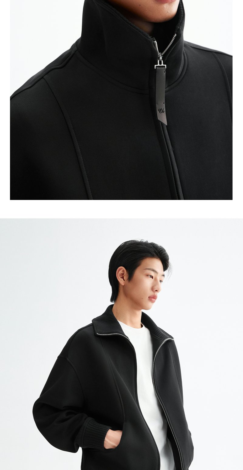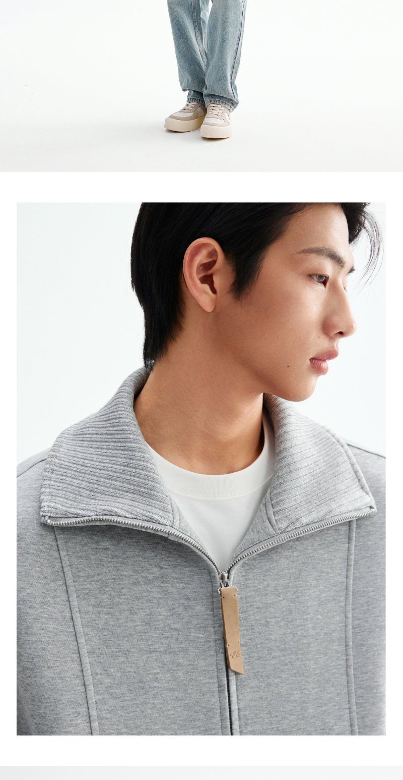 CHINISM赤尘 仿毛织空气层灰色开衫卫衣男春季翻领男士拉链外套