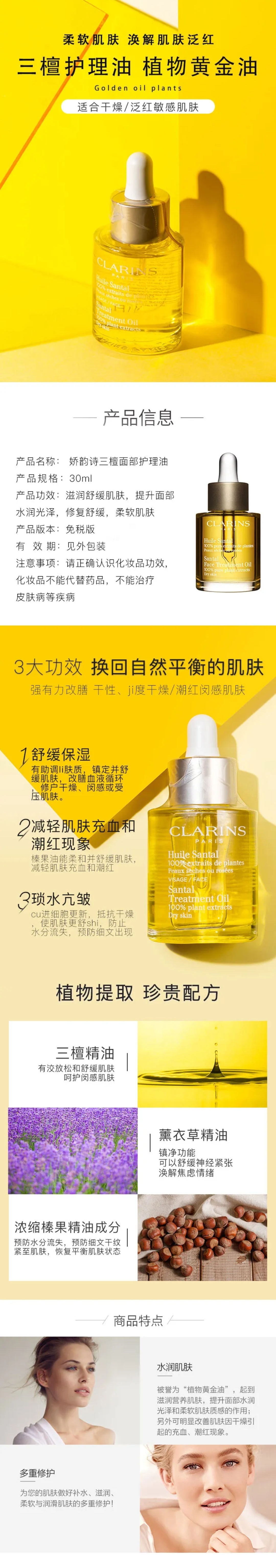 娇韵诗三檀舒颜面部补水保湿护理油30ml