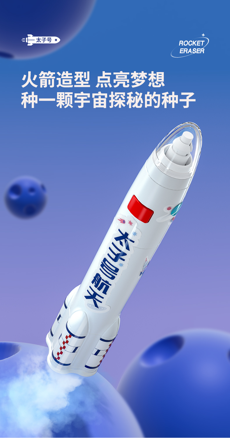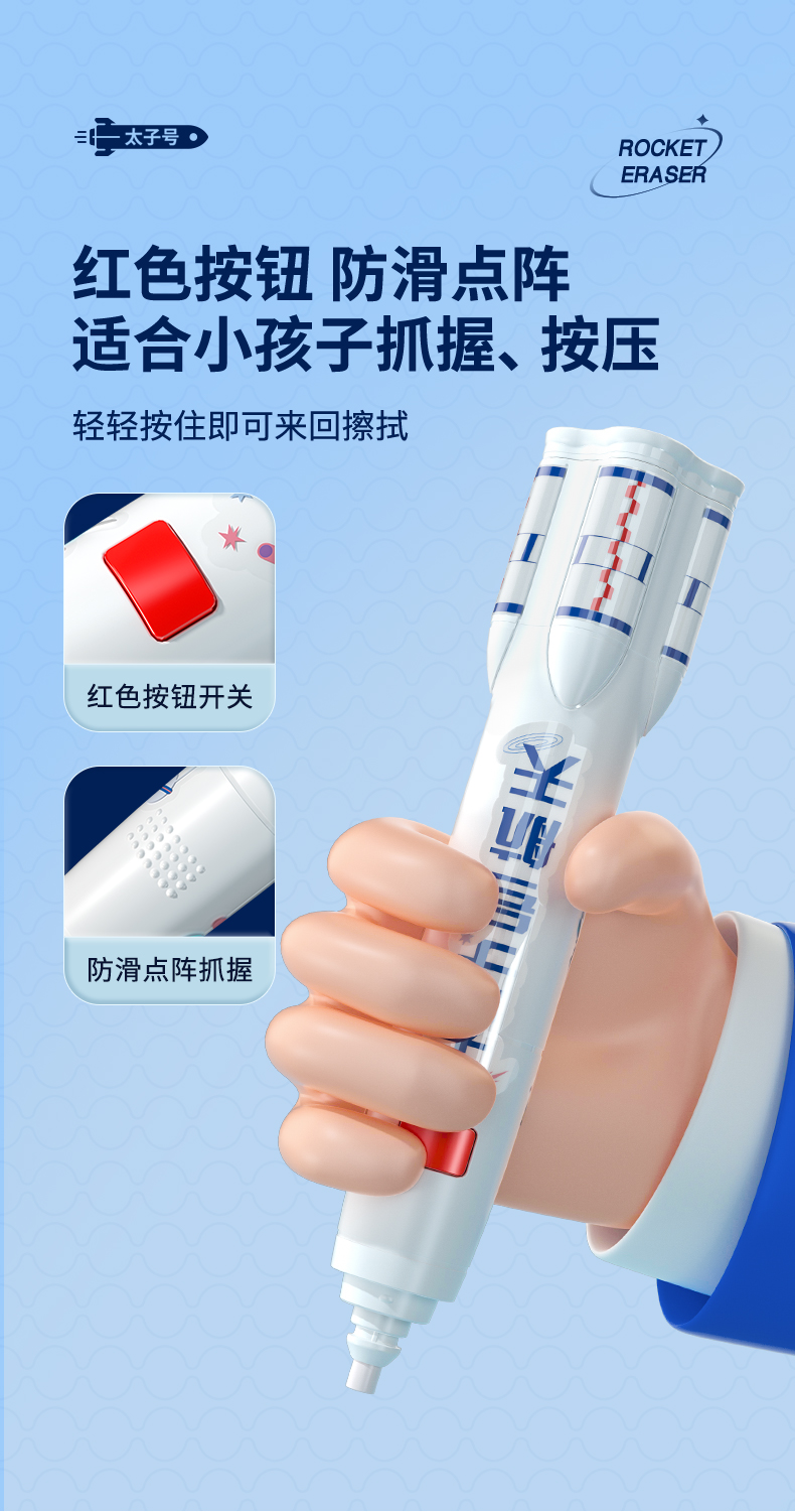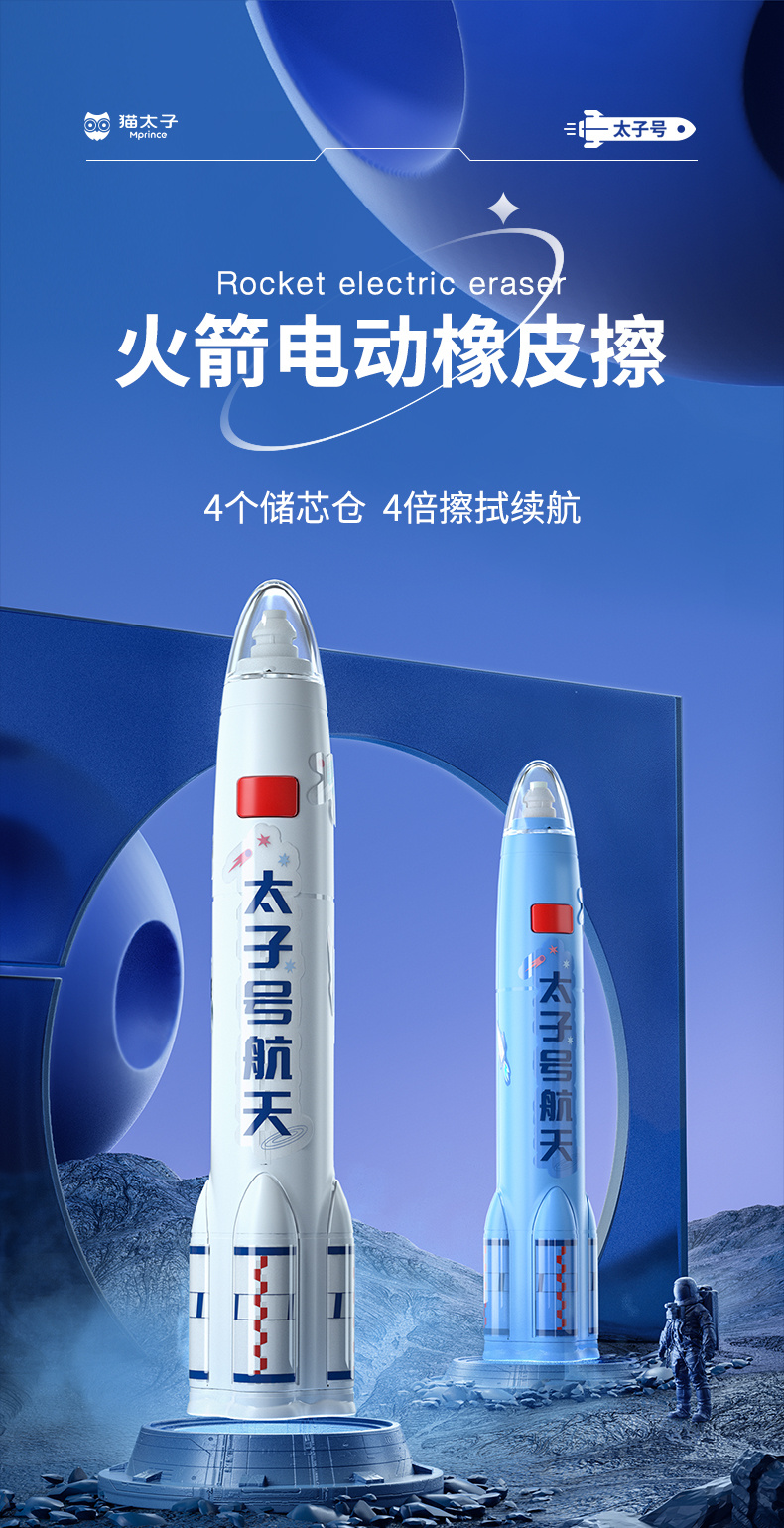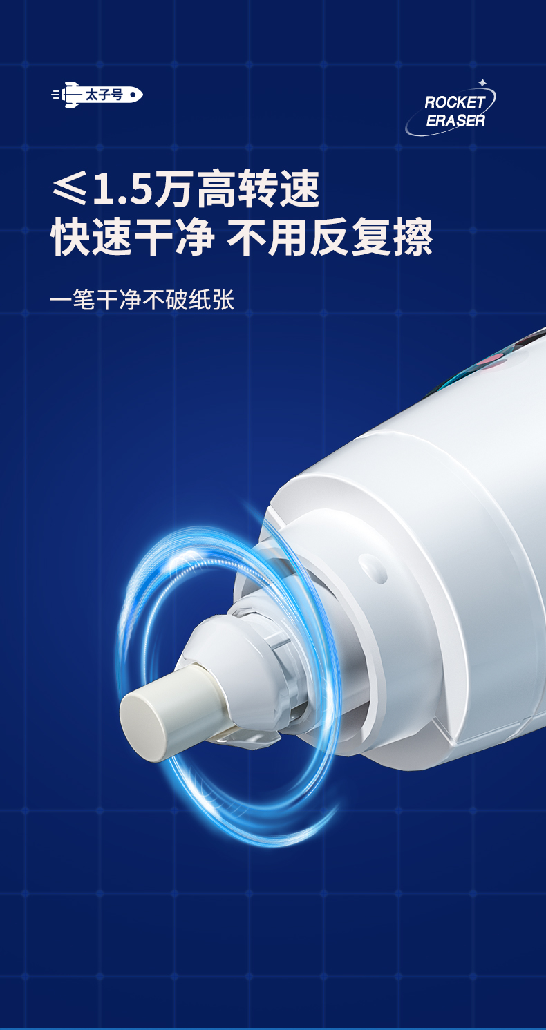 猫太子火箭电动橡皮擦小学生自动橡皮儿童学生专用美术4b像笔擦不留痕铅笔檫神器高光无屑一年级学习文具用品