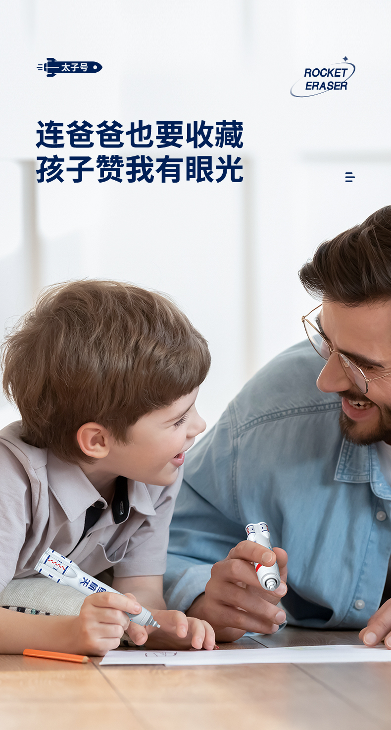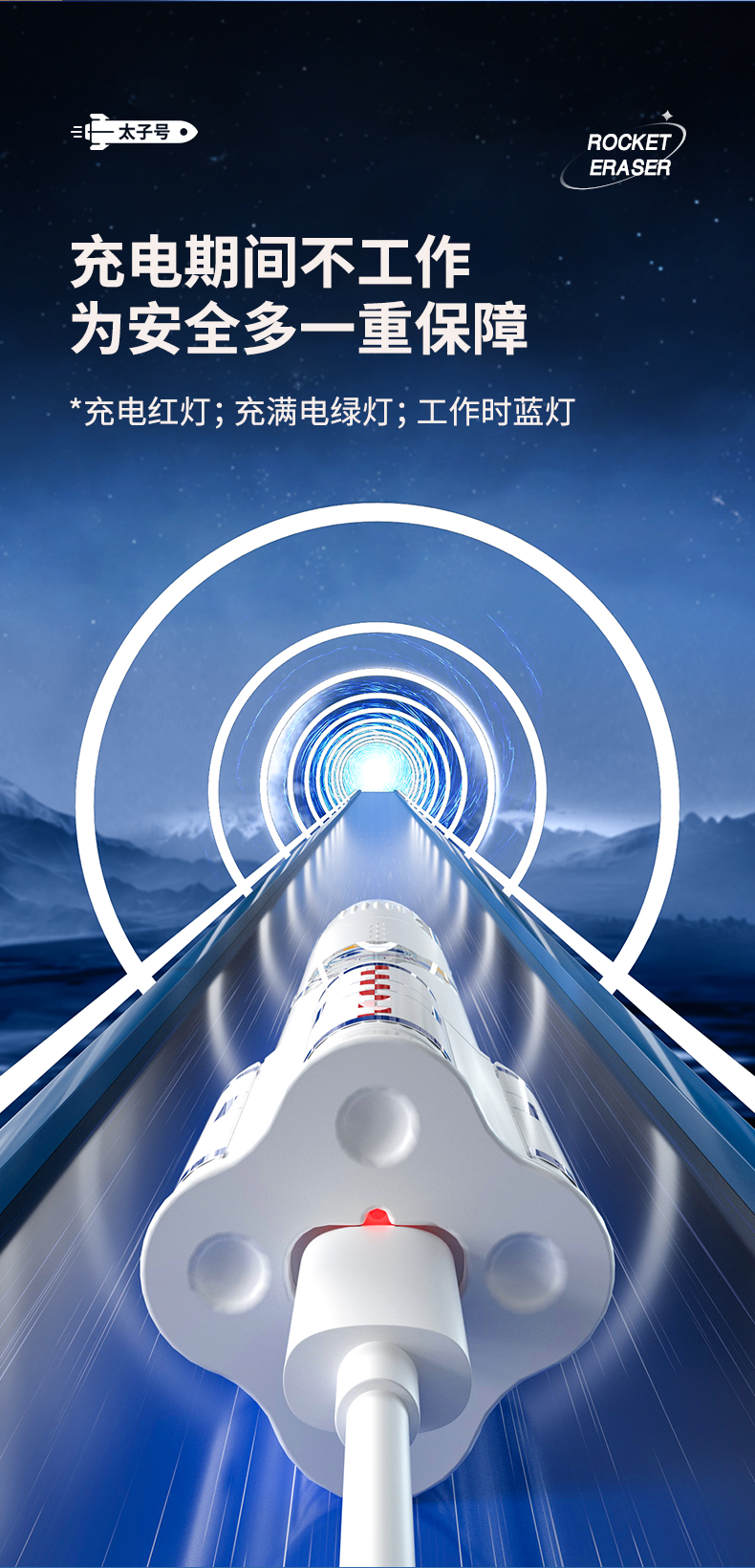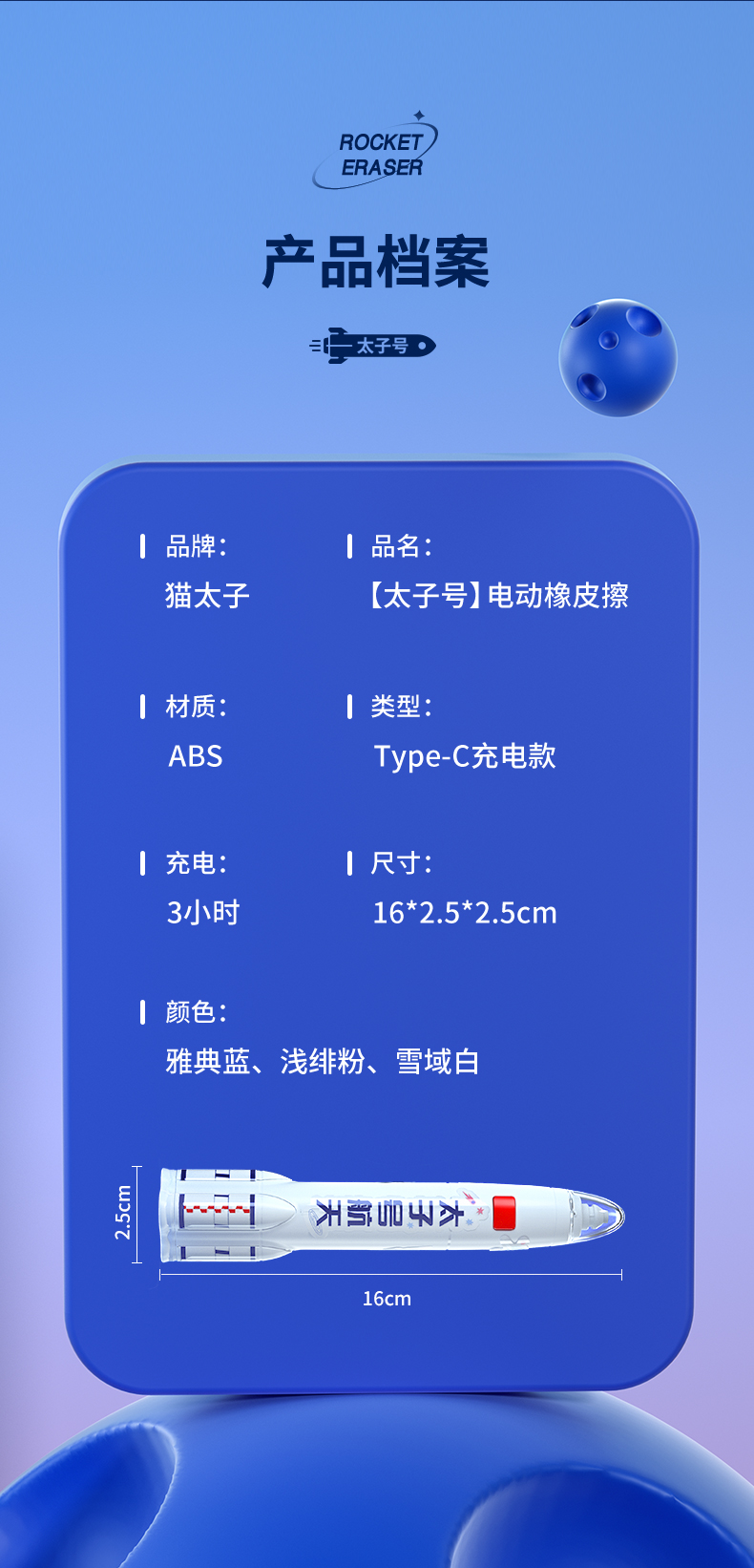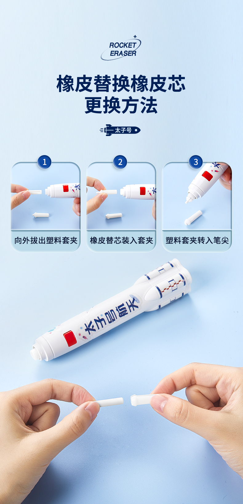 猫太子火箭电动橡皮擦小学生自动橡皮儿童学生专用美术4b像笔擦不留痕铅笔檫神器高光无屑一年级学习文具用品