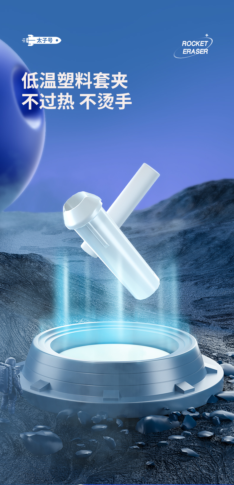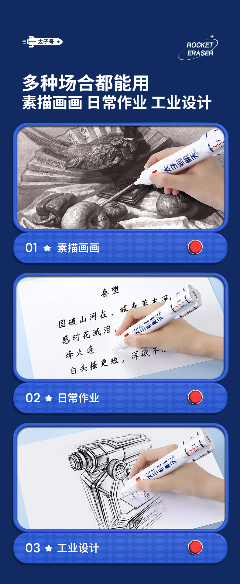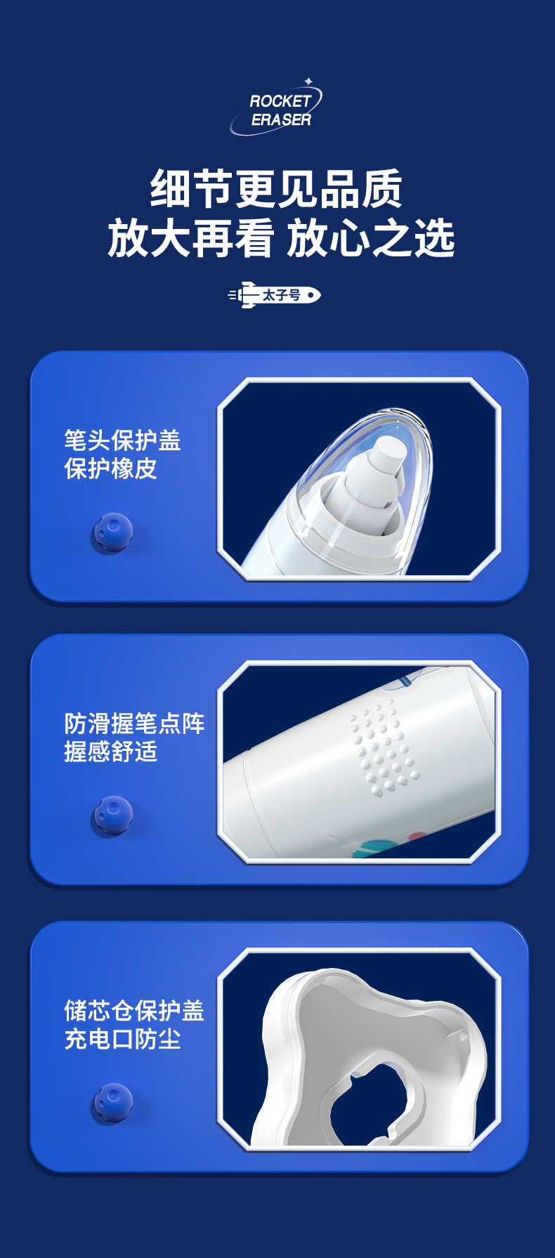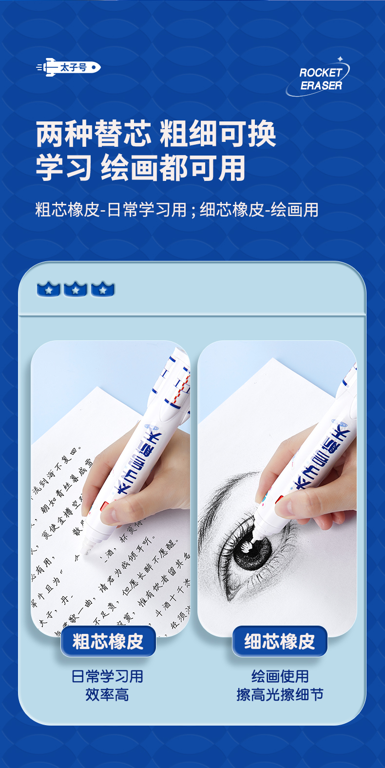 猫太子火箭电动橡皮擦小学生自动橡皮儿童学生专用美术4b像笔擦不留痕铅笔檫神器高光无屑一年级学习文具用品