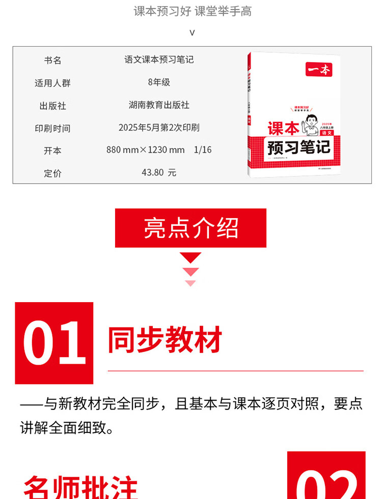 2025秋新一本初中预习笔记八年级上下册语文数学英语 教材同步练习册人教版预习复习资料书