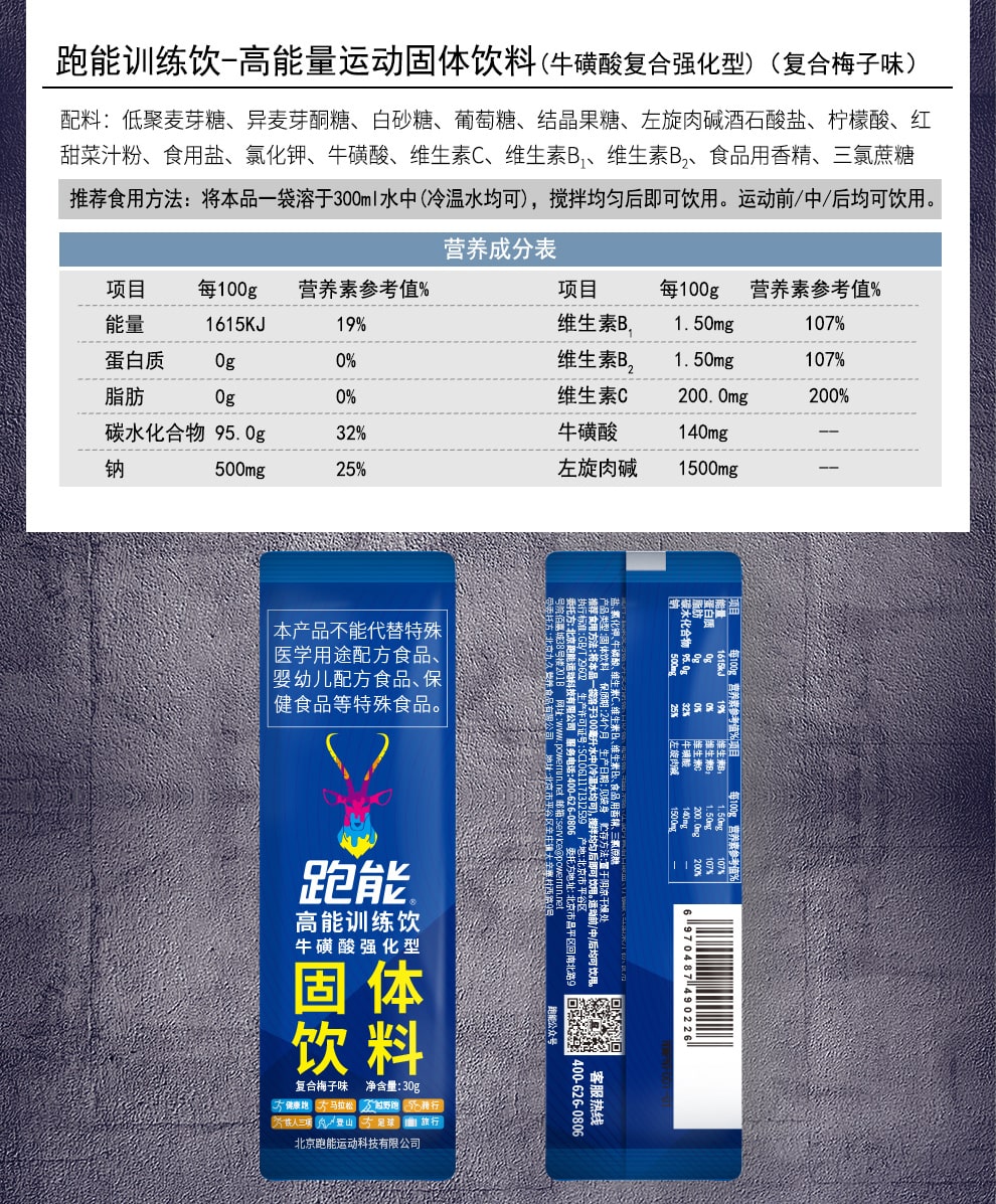 跑能高能训练饮-粉剂运动饮料/牛磺酸+左旋肉碱+红甜菜粉/快升血氧/强补能量/(保质期26年9月)