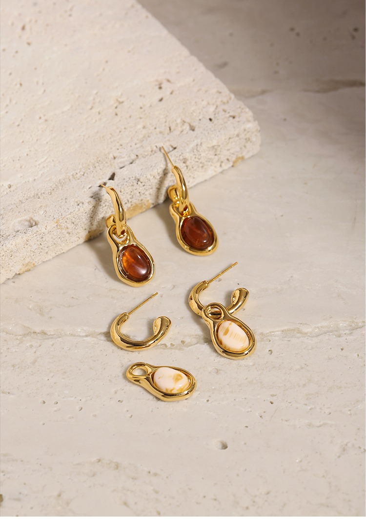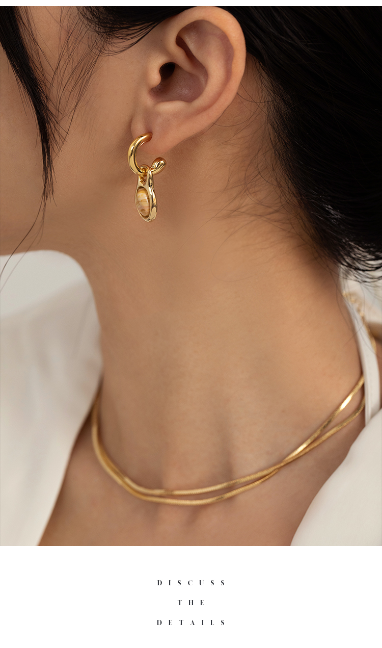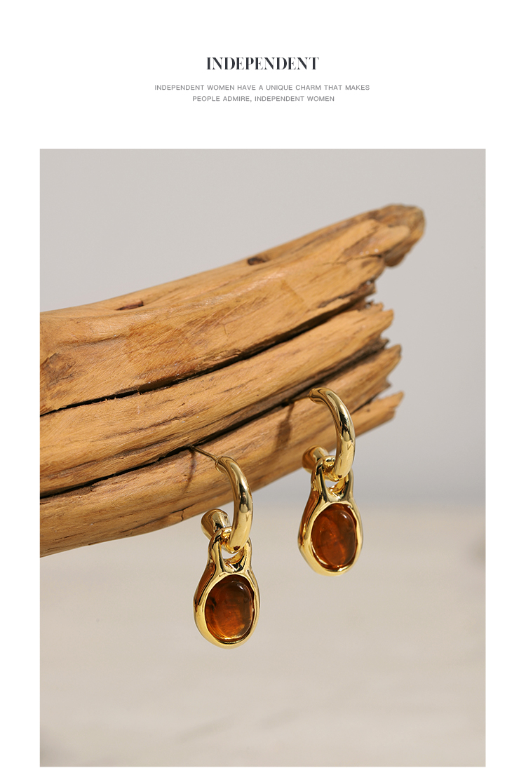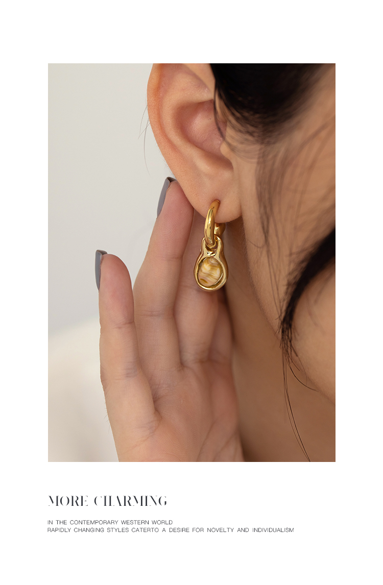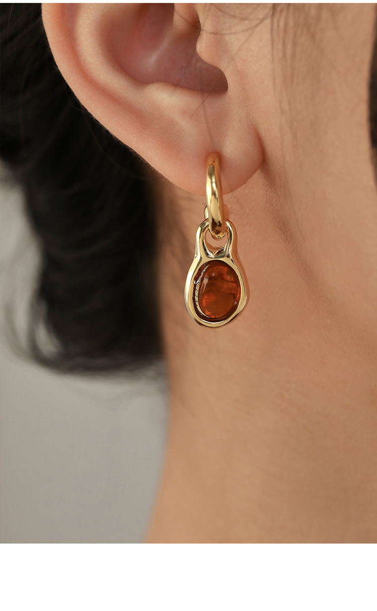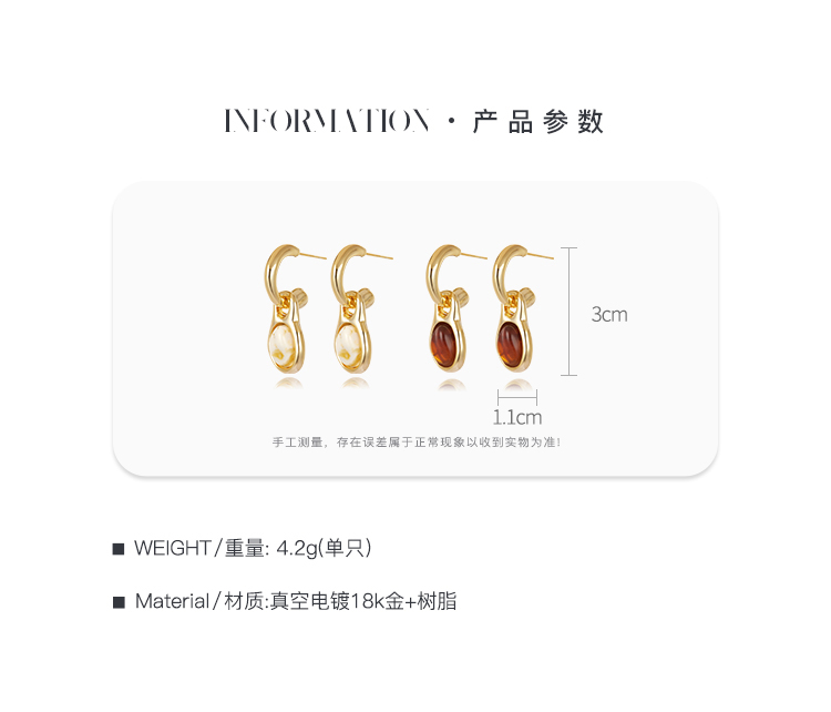 Oflye潮流饰品 轻奢复古小众气质耳环女高质感树脂可拆耳坠时尚耳钉新款潮