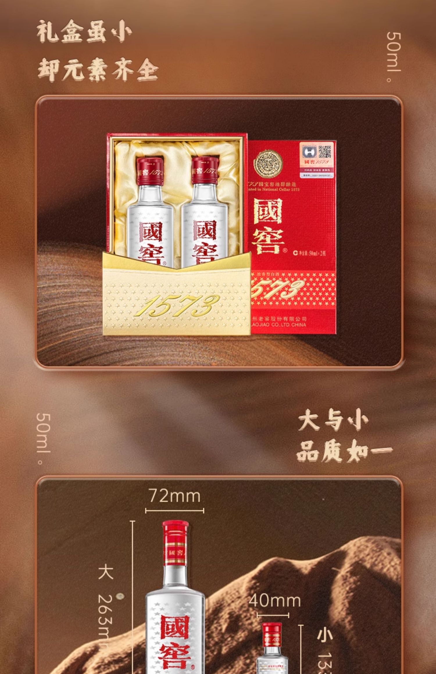 【酒厂直营】国窖1573浓香型白酒52度50ml*2 礼盒装 泸州老窖官方旗舰店
