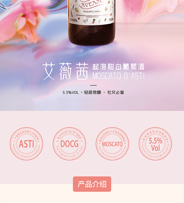 艾薇茜起泡甜白葡萄酒 5.5%vol 750ml 泸州老窖官方旗舰店