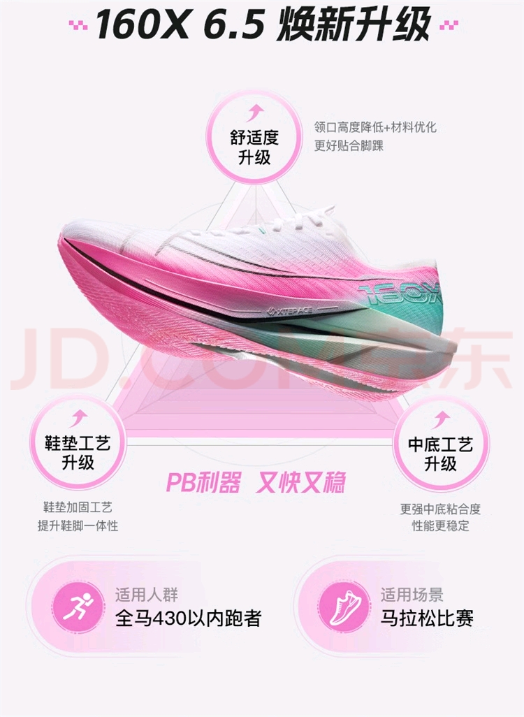 特步160X6.5跑鞋男女马拉松竞速碳板减震跑步鞋