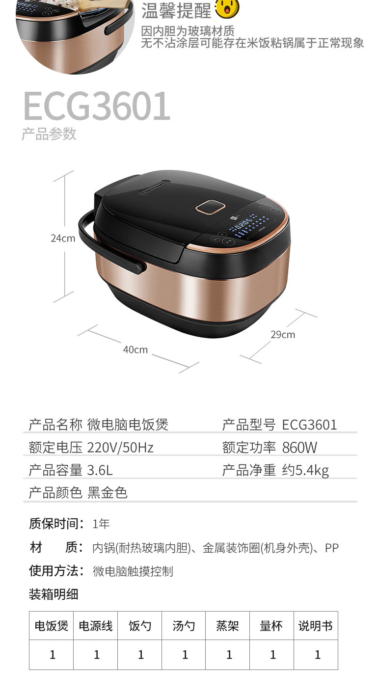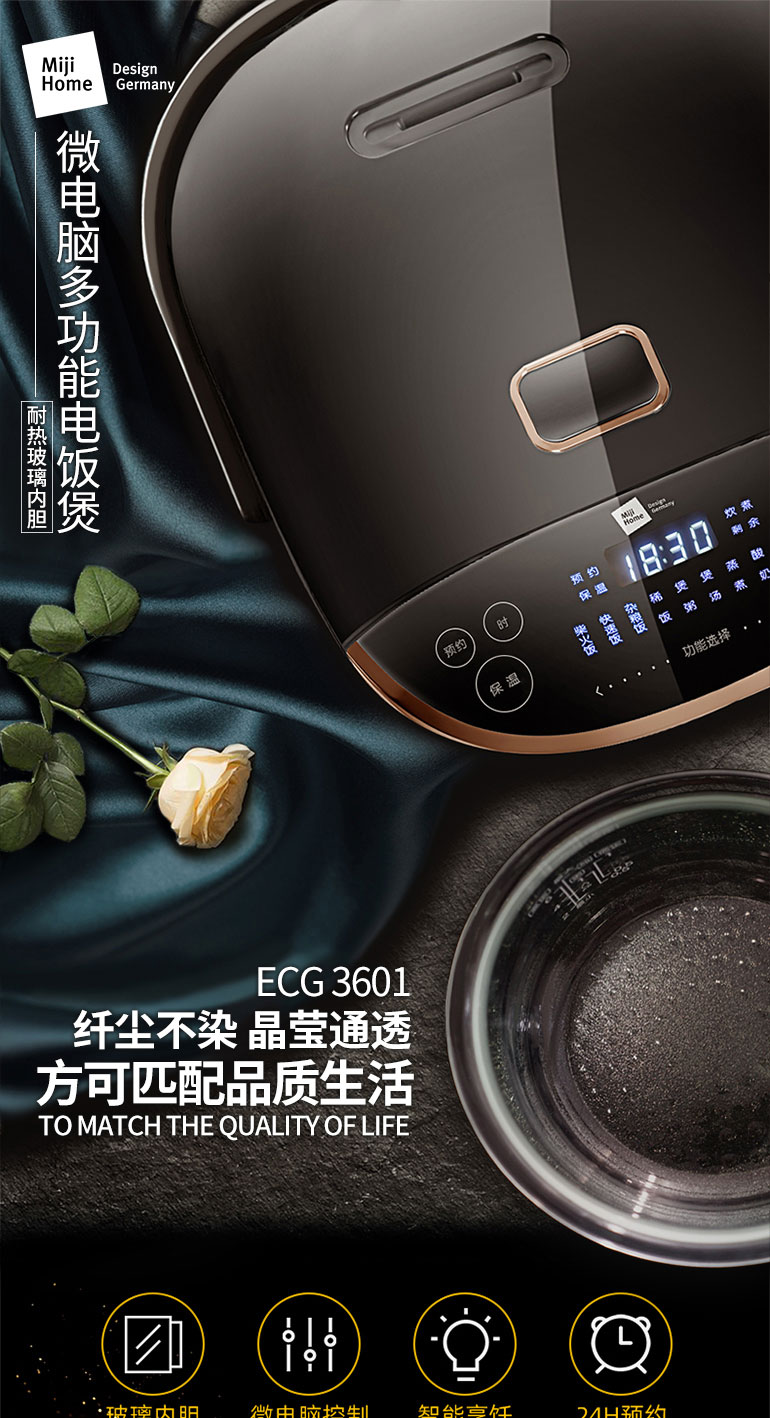 米技 微电脑多功能电饭煲(耐热玻璃内胆)ECG3601 商品图2