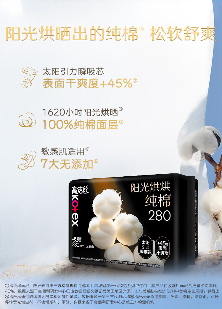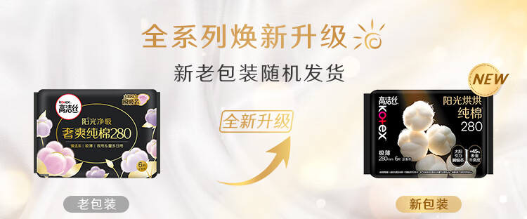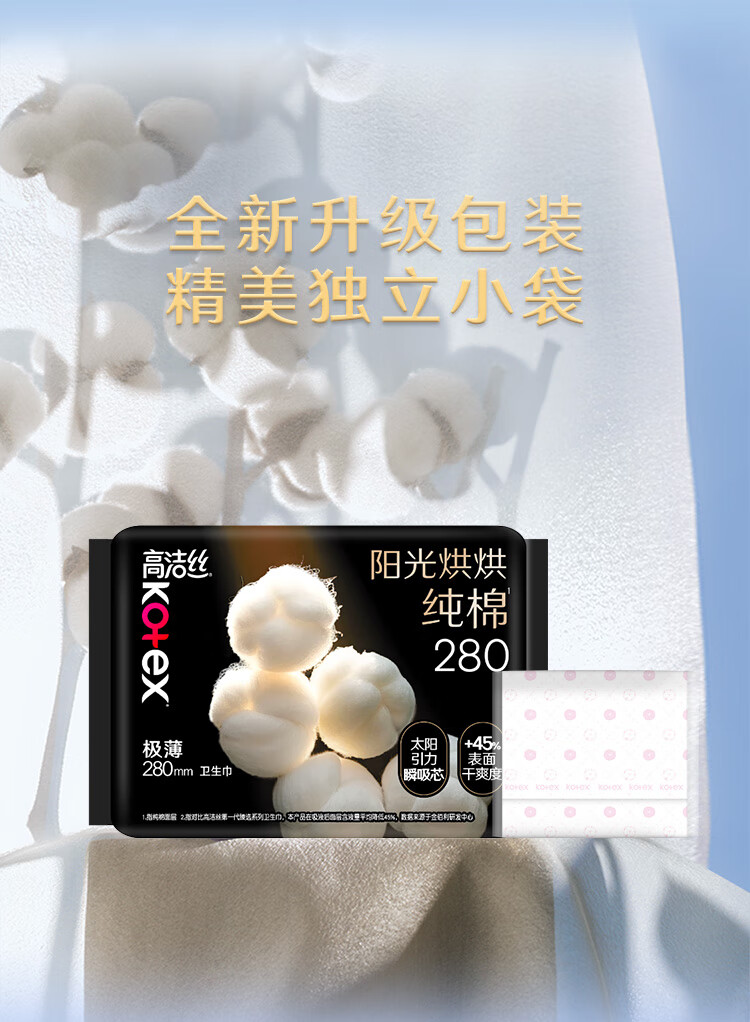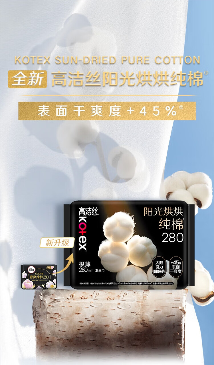 高洁丝阳光烘烘极薄纯棉280日用卫生巾6片