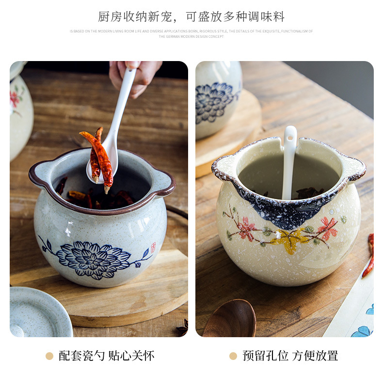 【复古猪油罐】家用猪油罐耐高温陶瓷盐罐调味罐厨房油泼辣子辣椒油调料罐 大糖罐