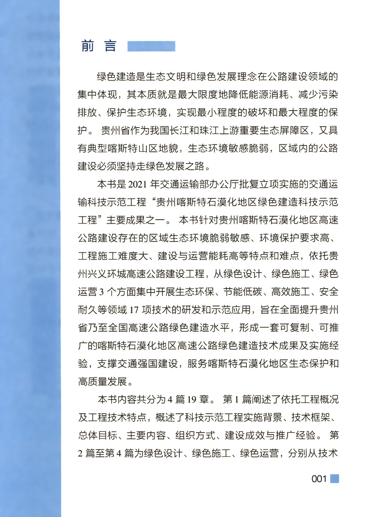 书名:喀斯特石漠化地区高速公路绿色建造创新技术与应用——贵州兴义环城高速公路实践