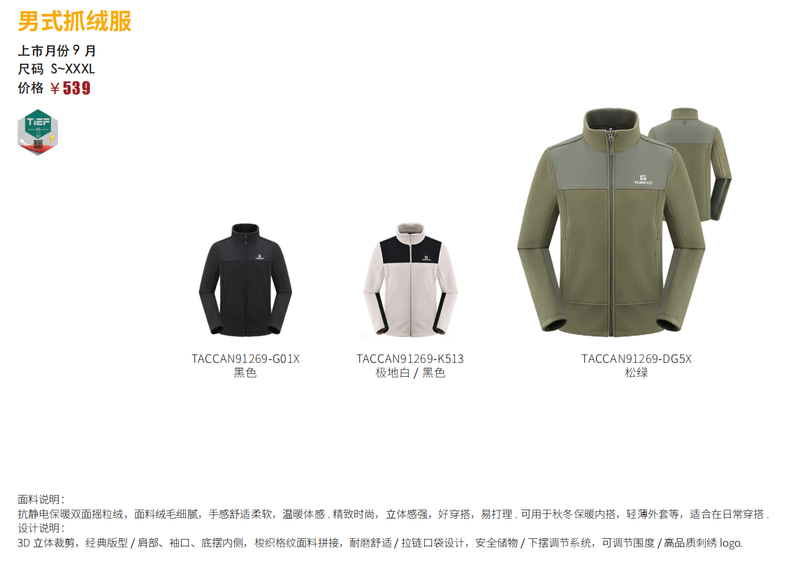 探路者男式抓绒服TACCAN91269