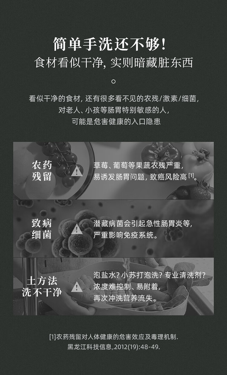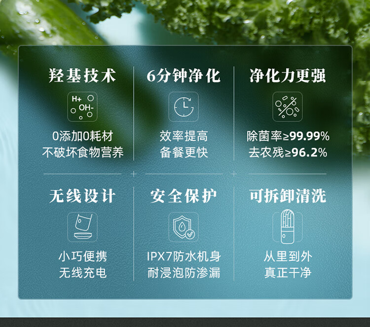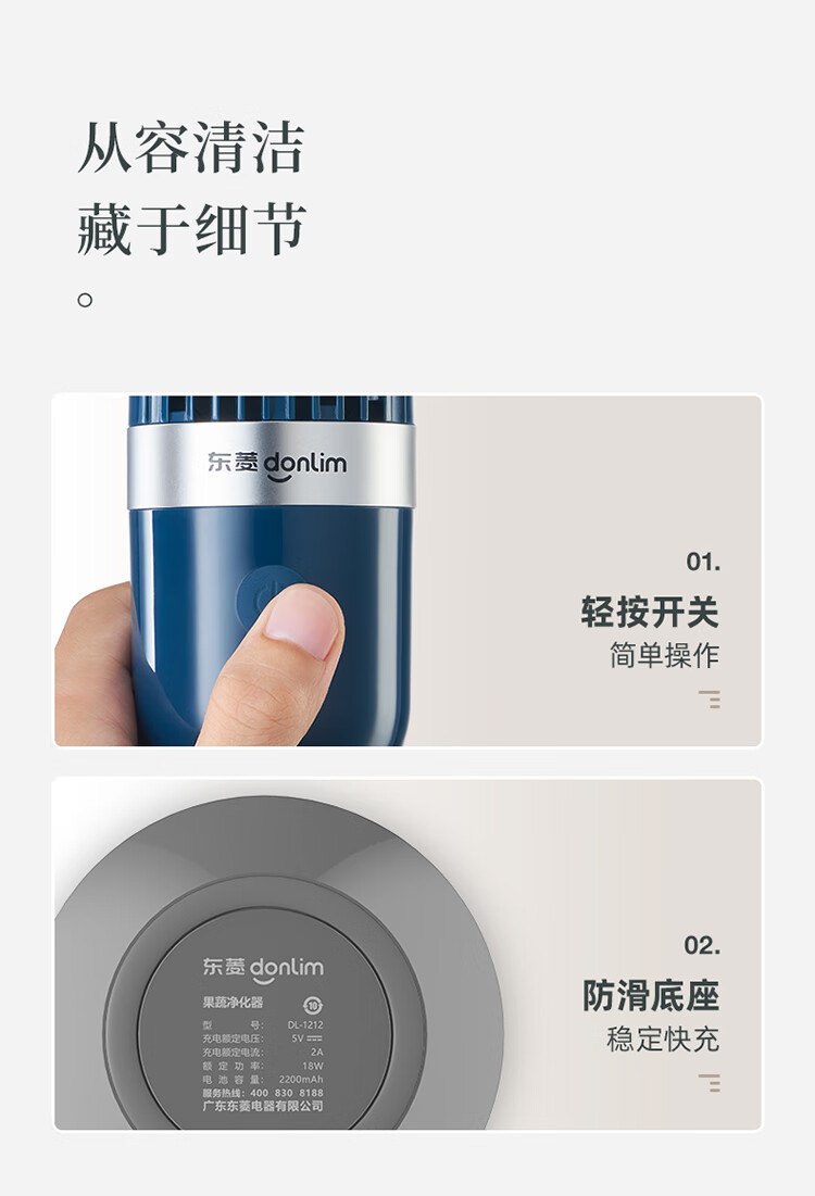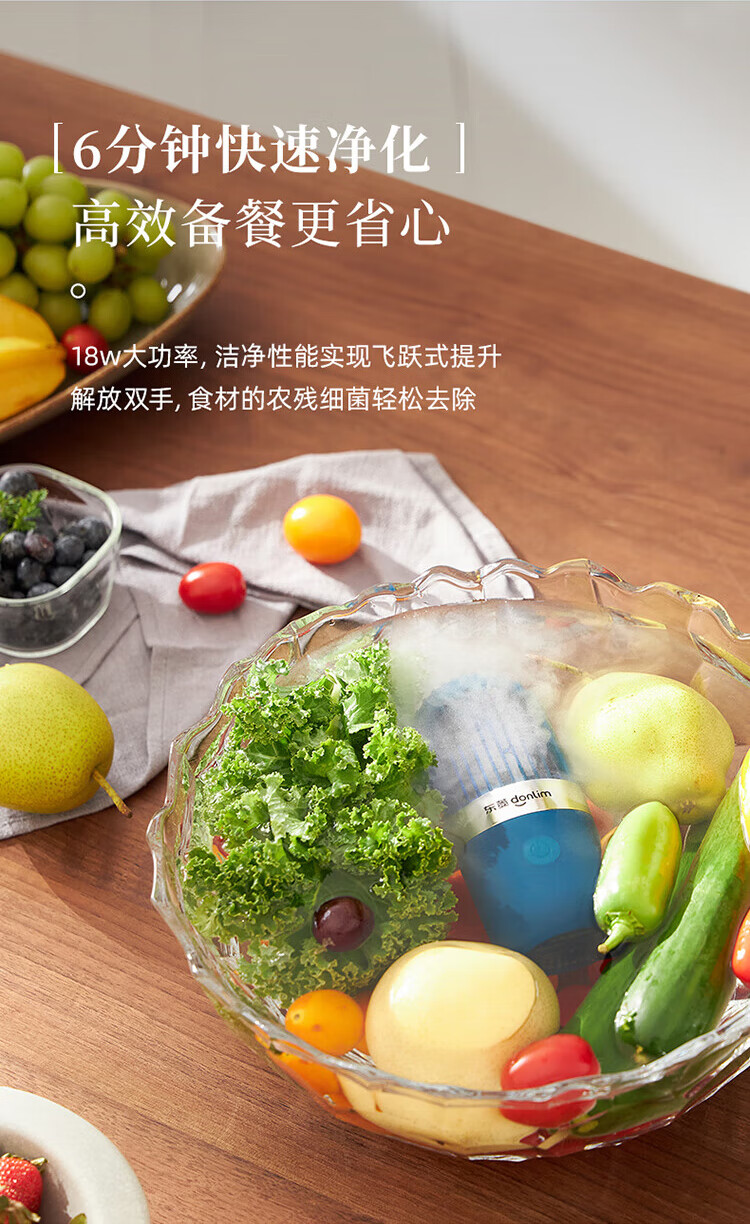 【小家电】东菱Donlim果蔬清洗机蔬菜水果去农残净化器家用洗菜消毒神器食材清洁机无线便携 DL-1212 HF