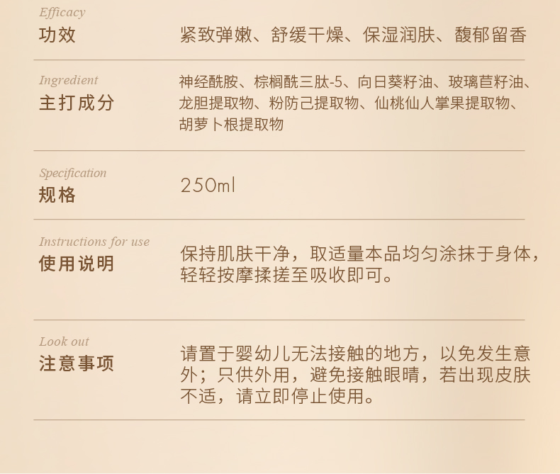 Dear lrean独特艾琳 香氛身体乳250ml(5种香型可选:心跳回响、春日旷野、浮靡之水、我的少年、繁华花园)【够意思】