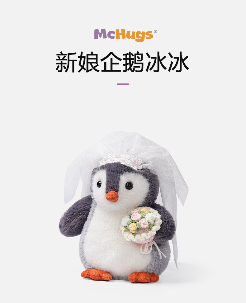McHugs新郎新娘企鹅冰冰毛绒玩偶玩具摆件娃娃公仔生日礼物情人节新品
