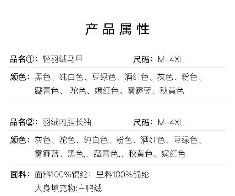 除了长袖内胆,还有7个色的马甲内胆可选。