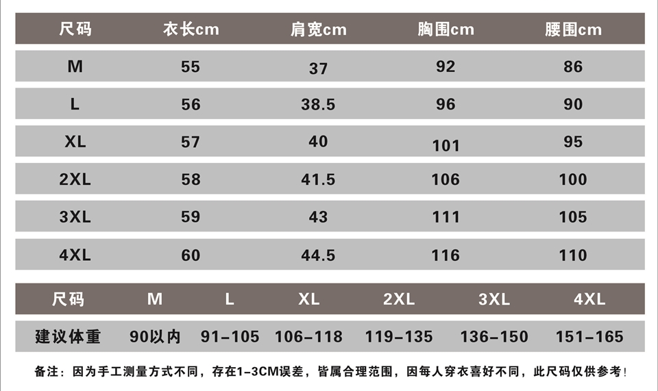 M36克,L39克,XL42克,2XL44克,3XL47克,4XL49克