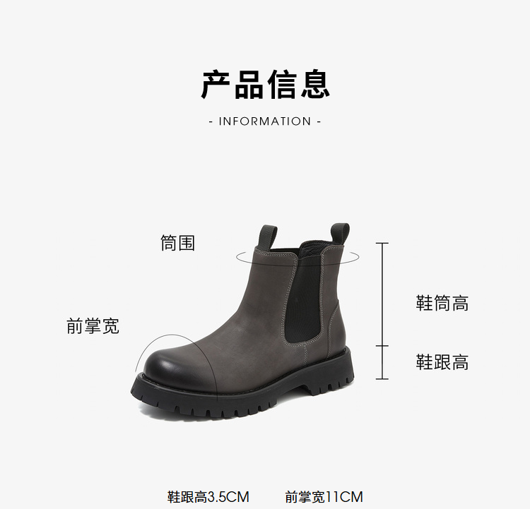 西遇厚底切尔西靴男秋冬季新款英伦风马丁靴增高短靴男靴子22225687