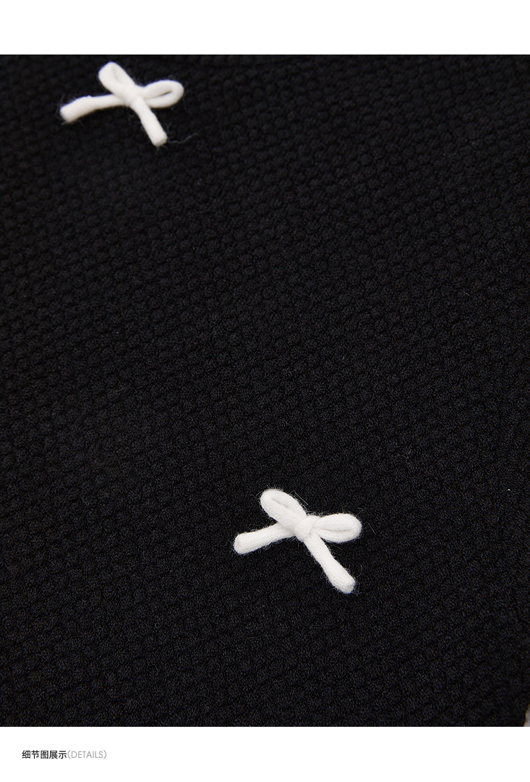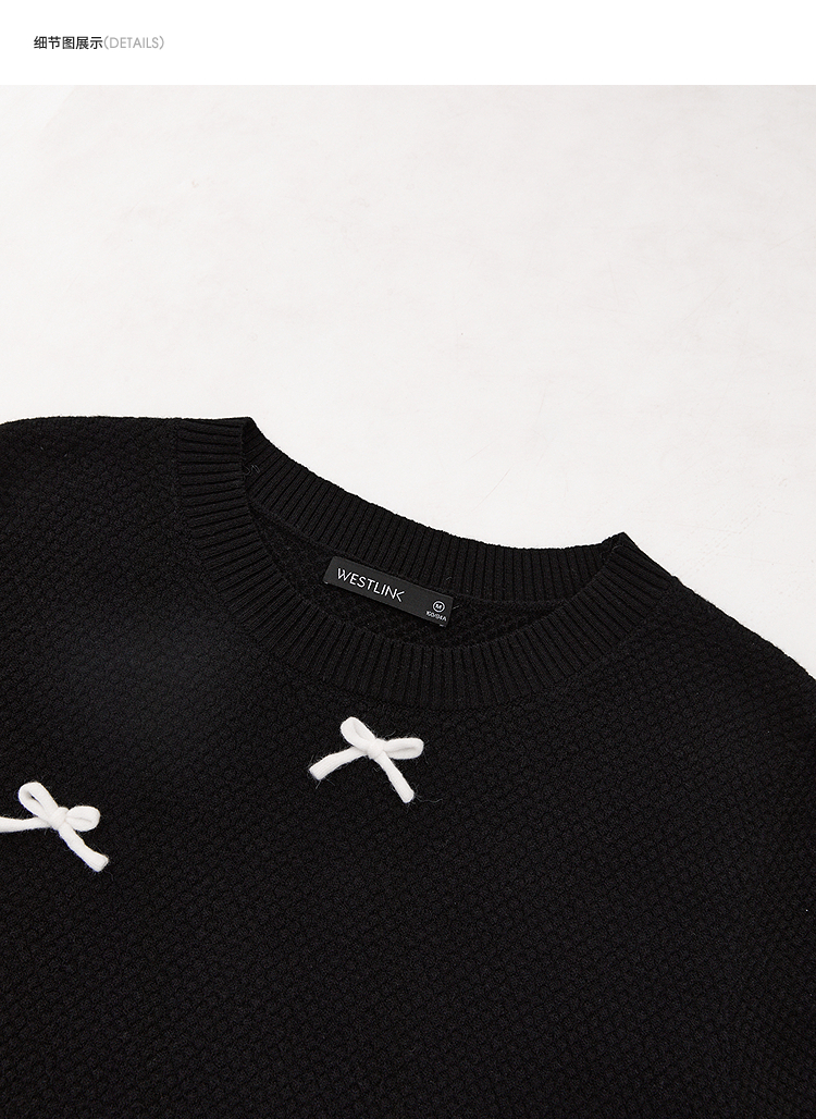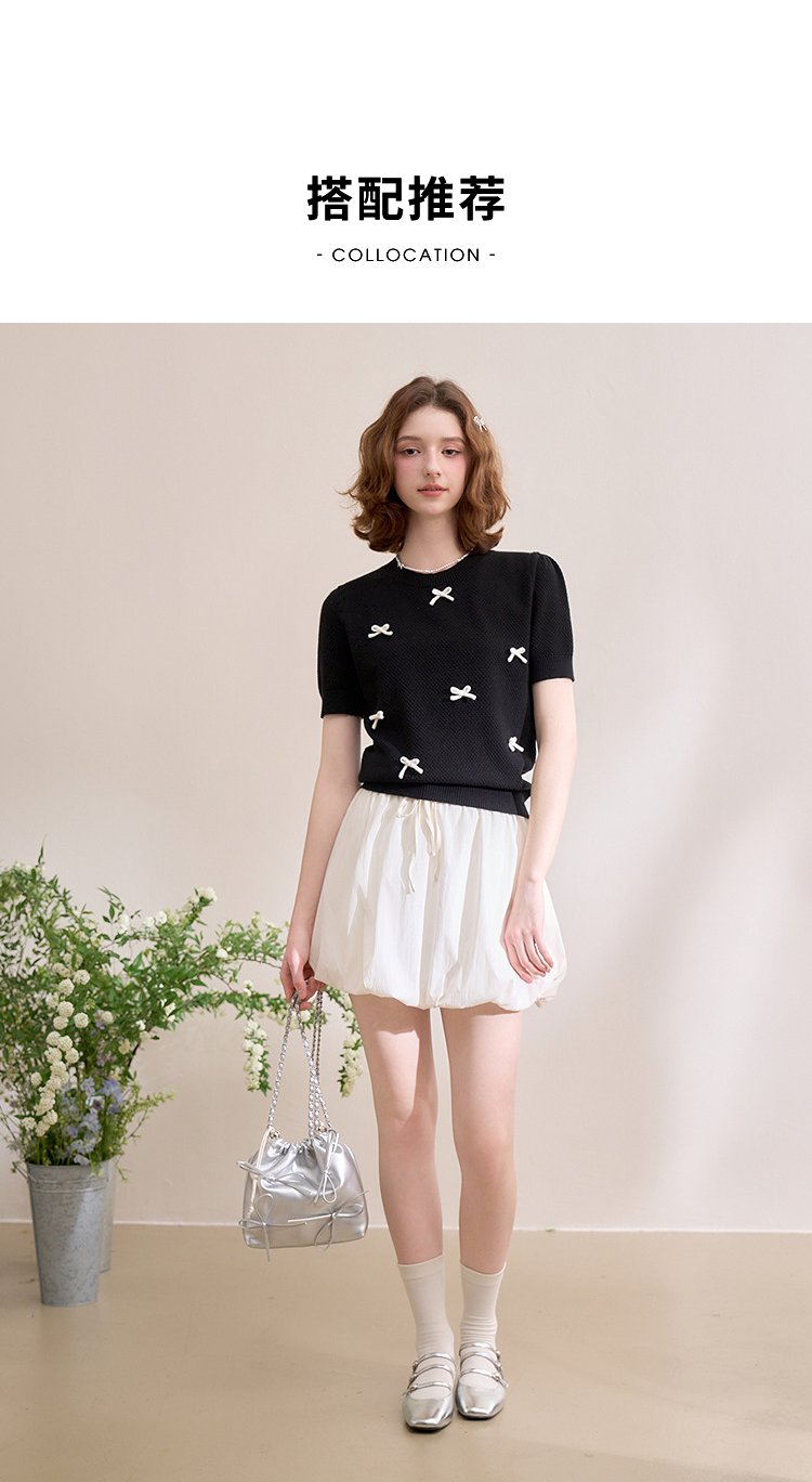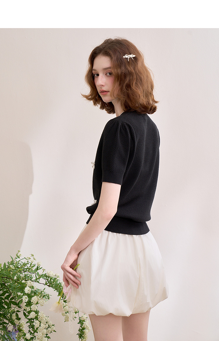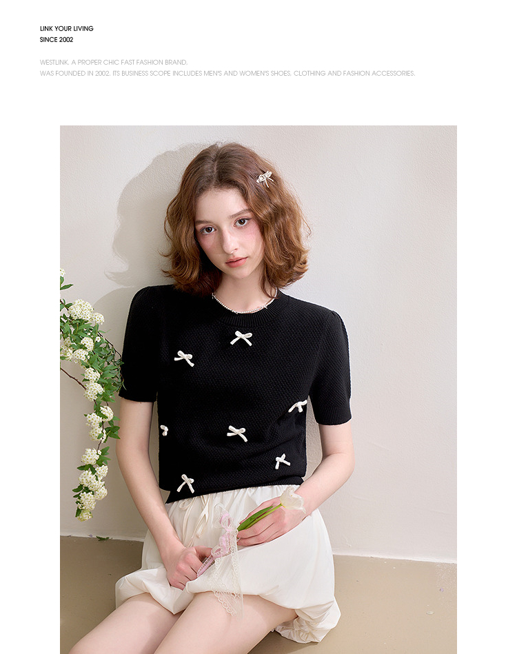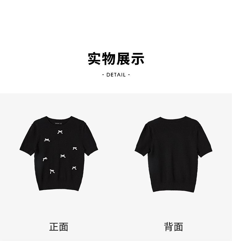 【限时秒杀】【立体蝴蝶结】软糯短袖针织衫女短款薄款圆领毛衣V0650269
