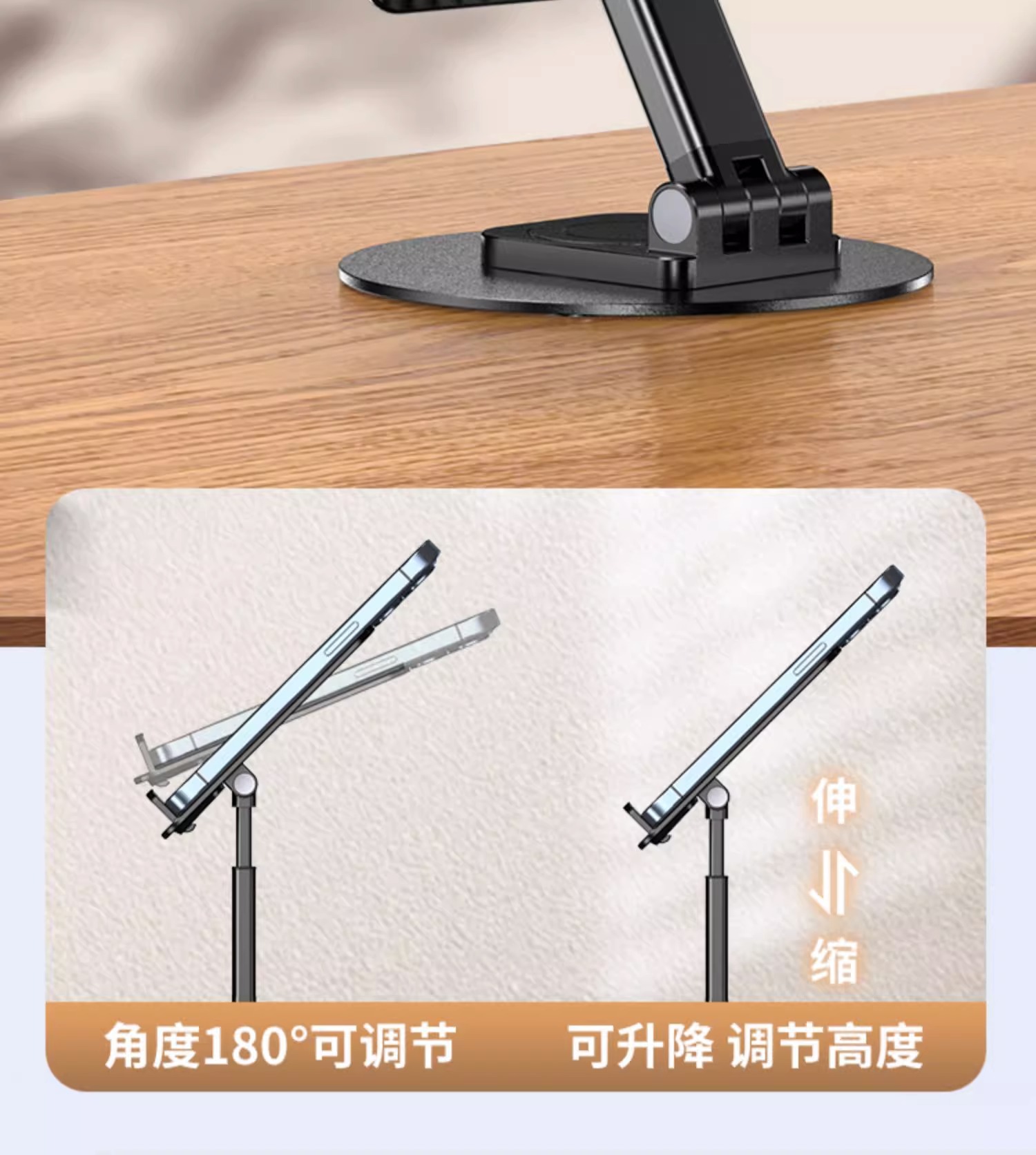 「限量9.9元包邮!360度旋转」金属手机支架 桌面升降折叠平板通用铝合金手机支撑架子数码配件
