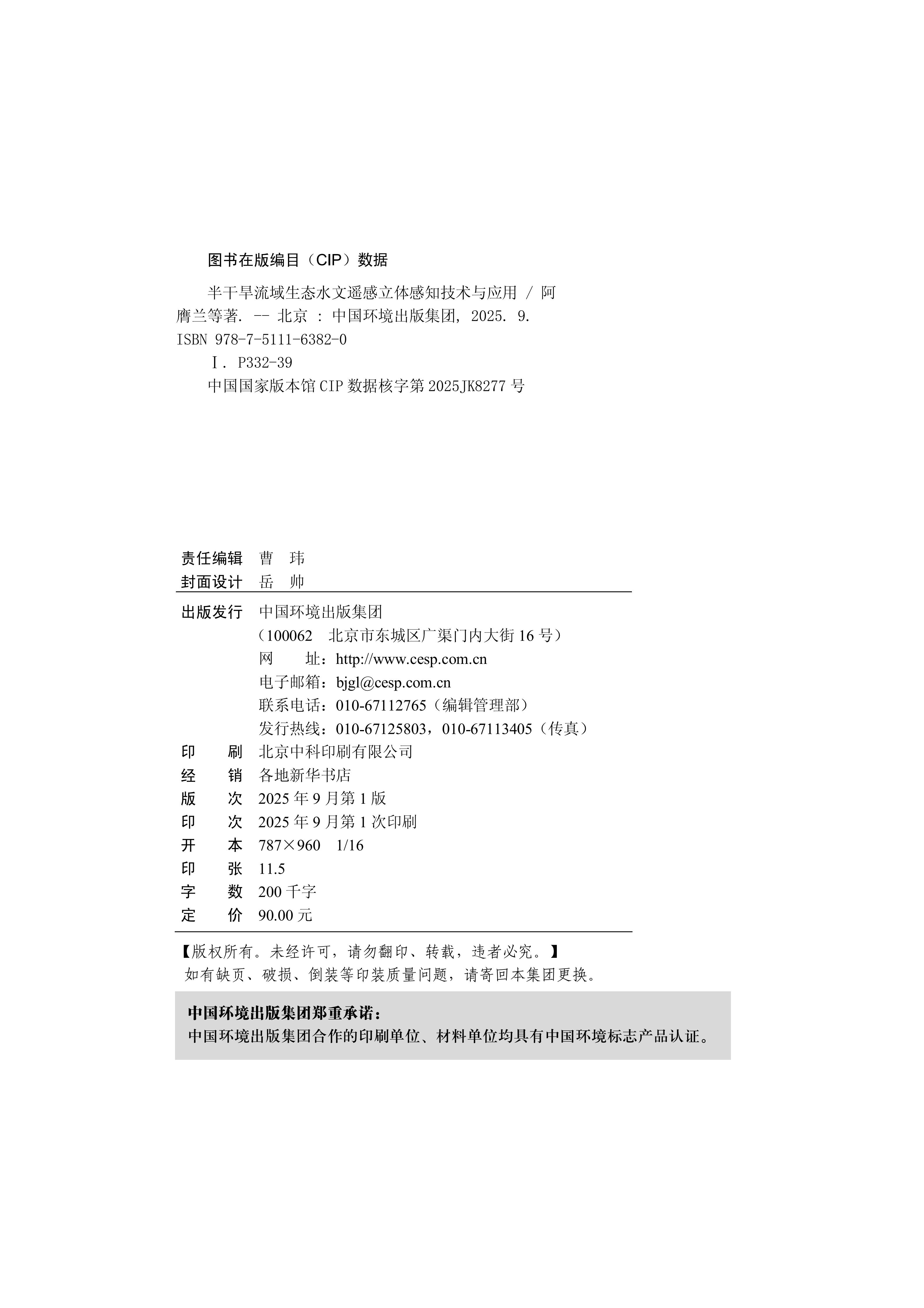 半干旱流域生态水文遥感立体感知技术与应用9787511163820