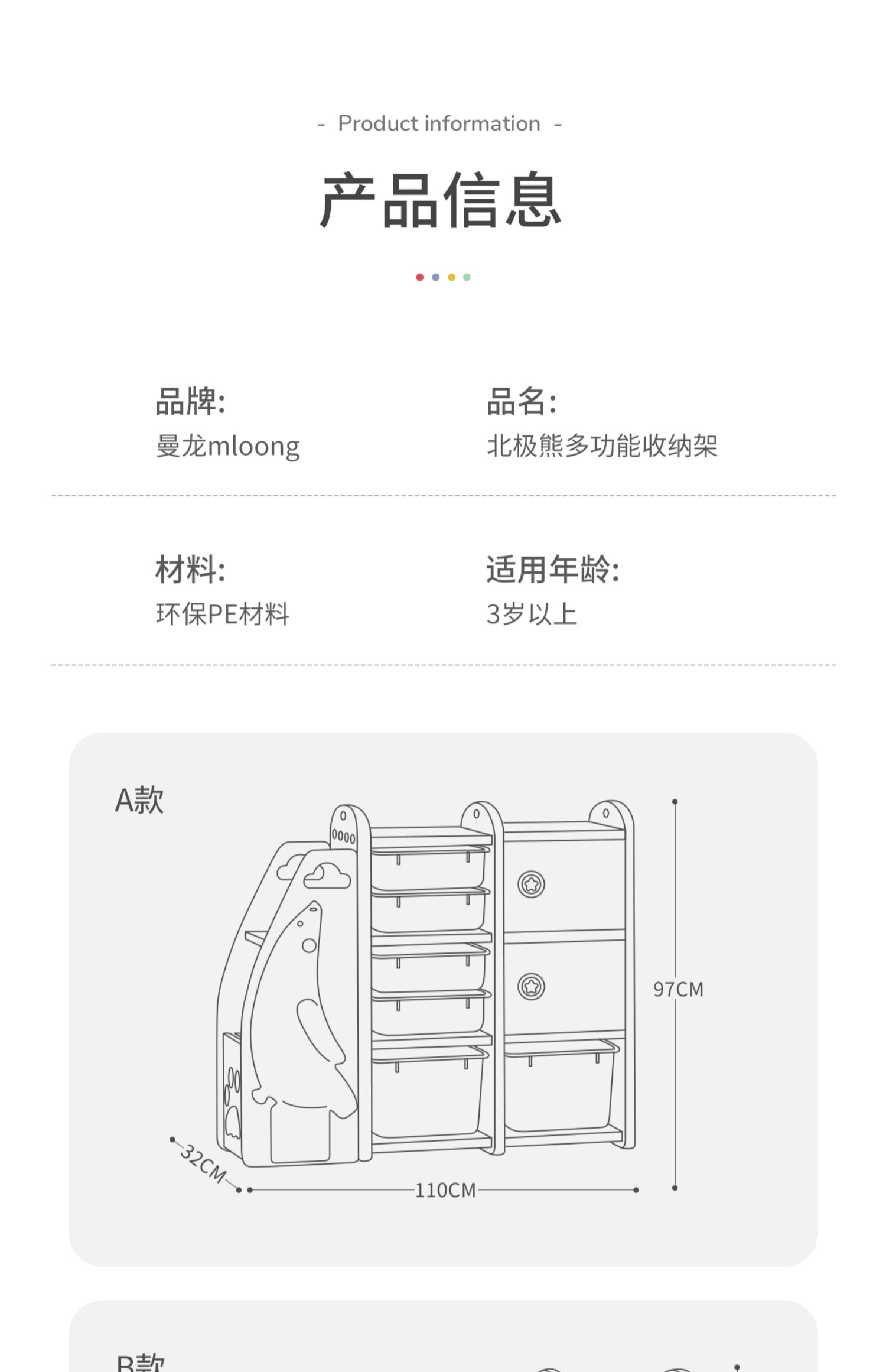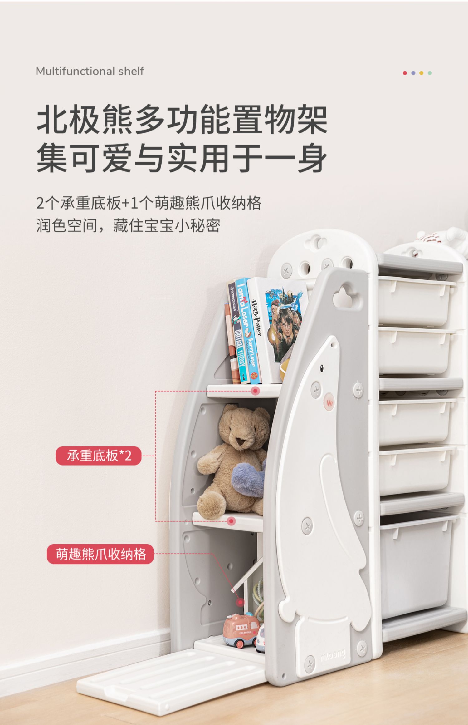 【冬日暖拥】曼龙mloong儿童玩具北极熊收纳架大容量整理柜收纳神器
