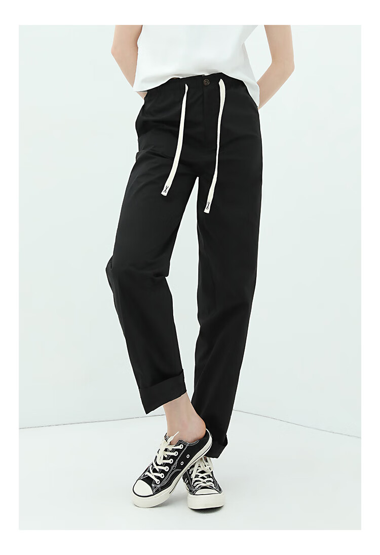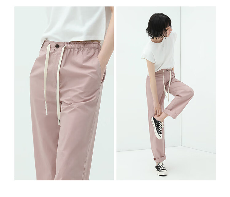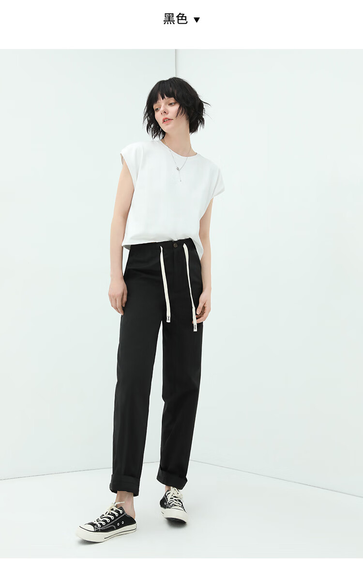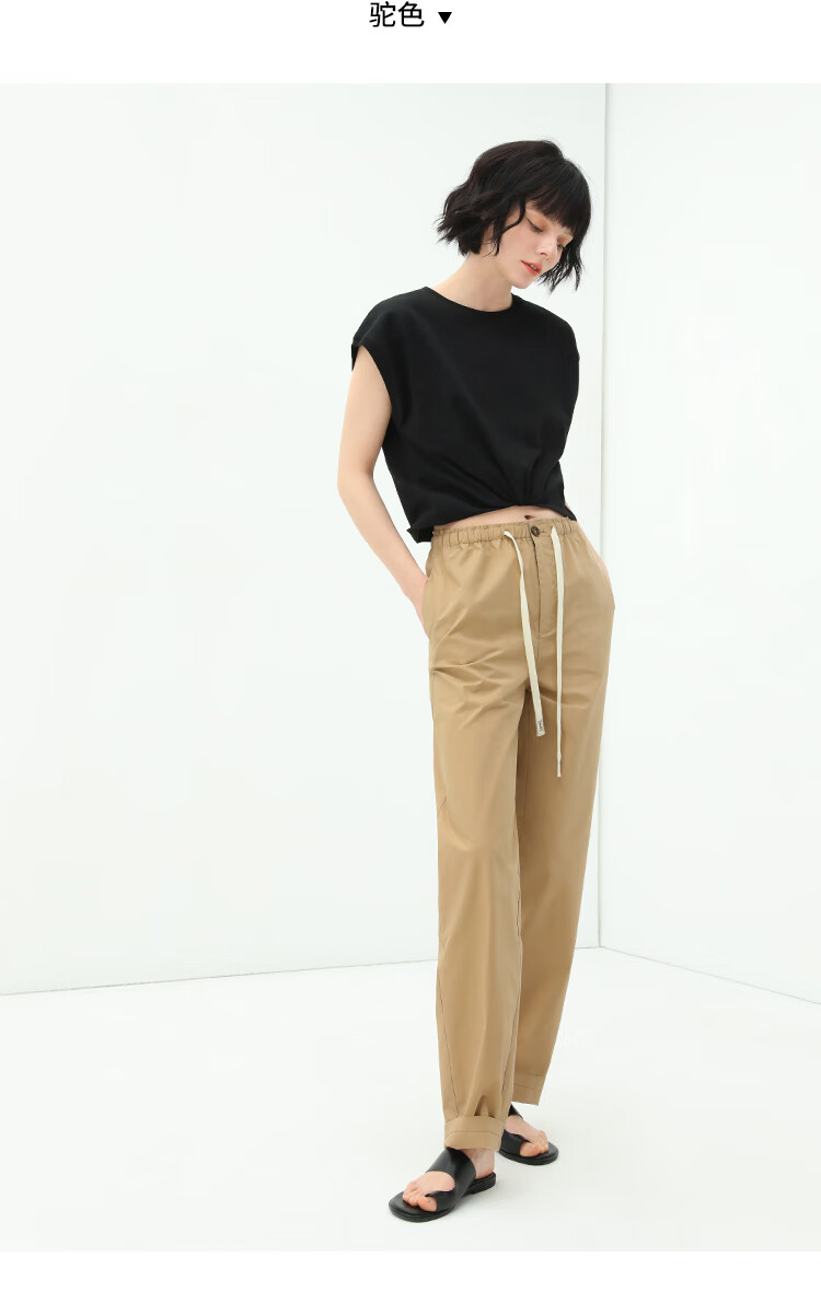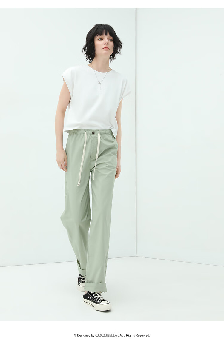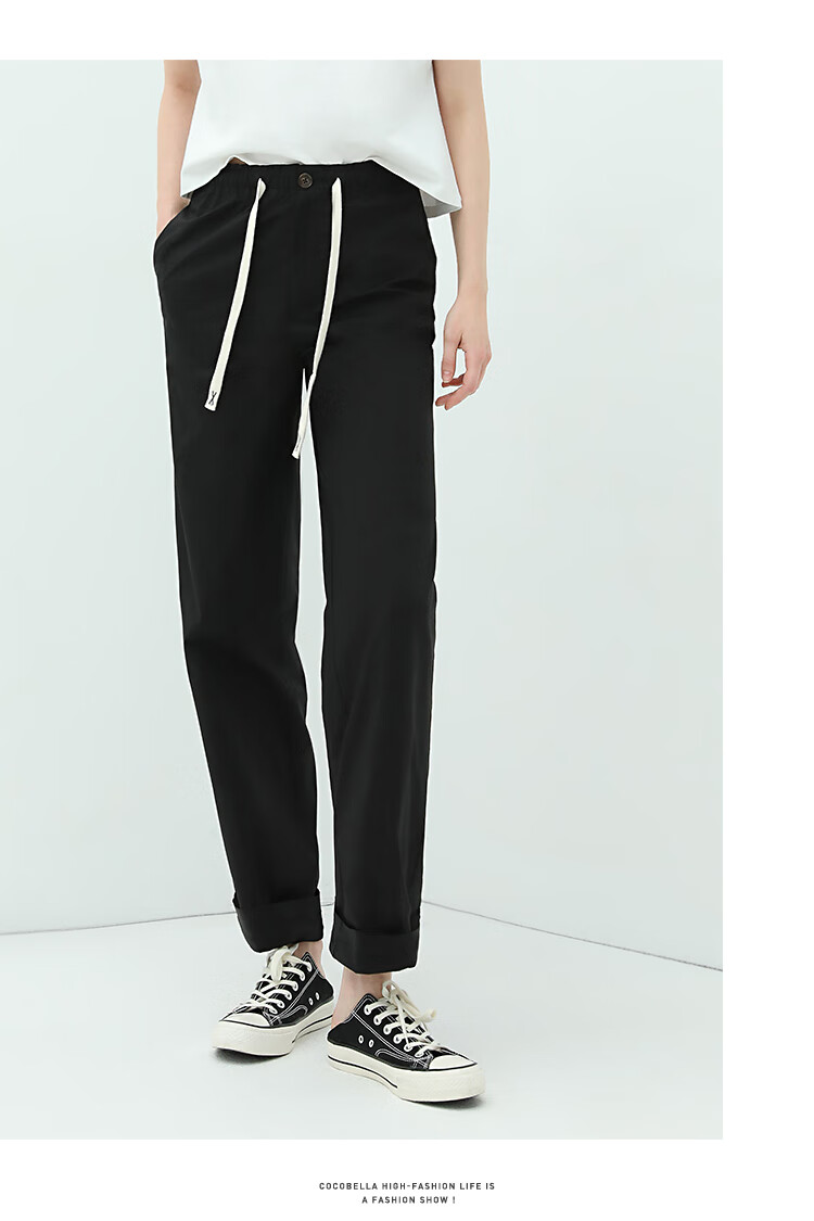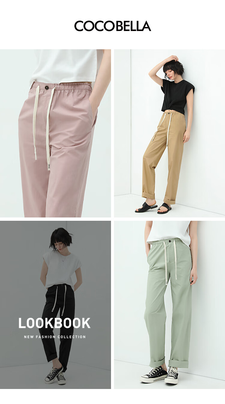 COCOBELLA撞色腰绳休闲凉爽工装裤女花苞腰哈伦裤NPA23
