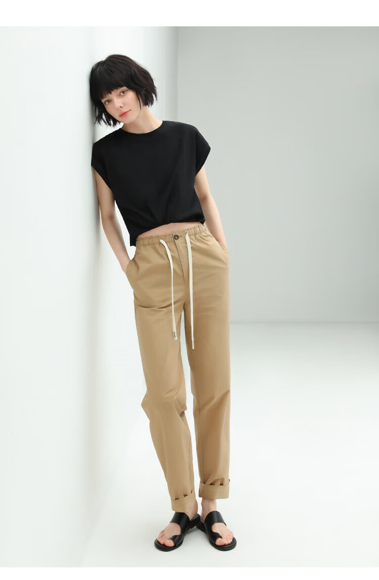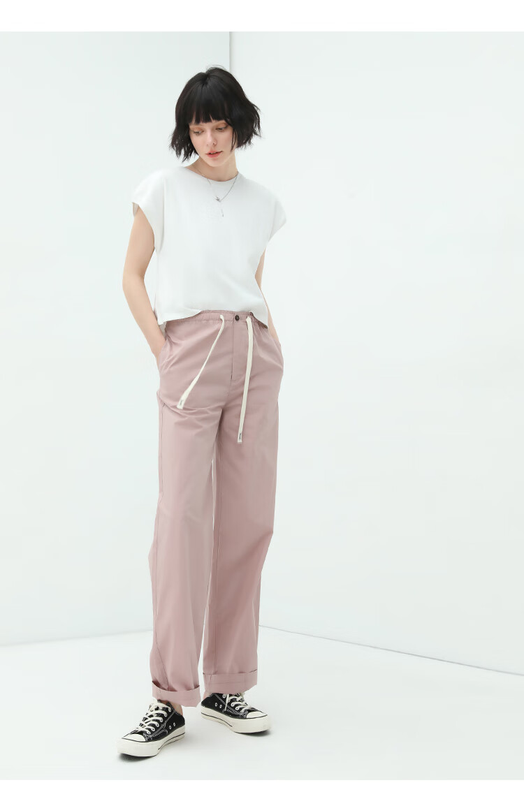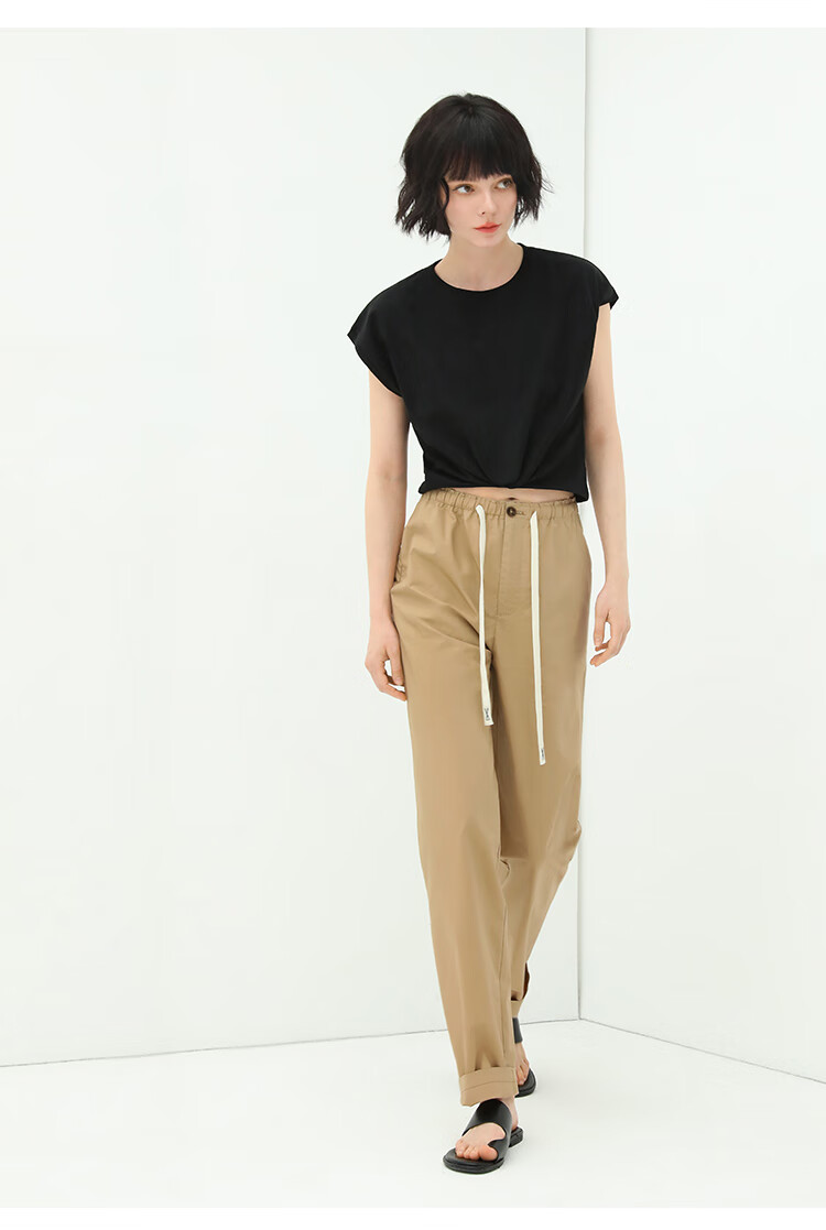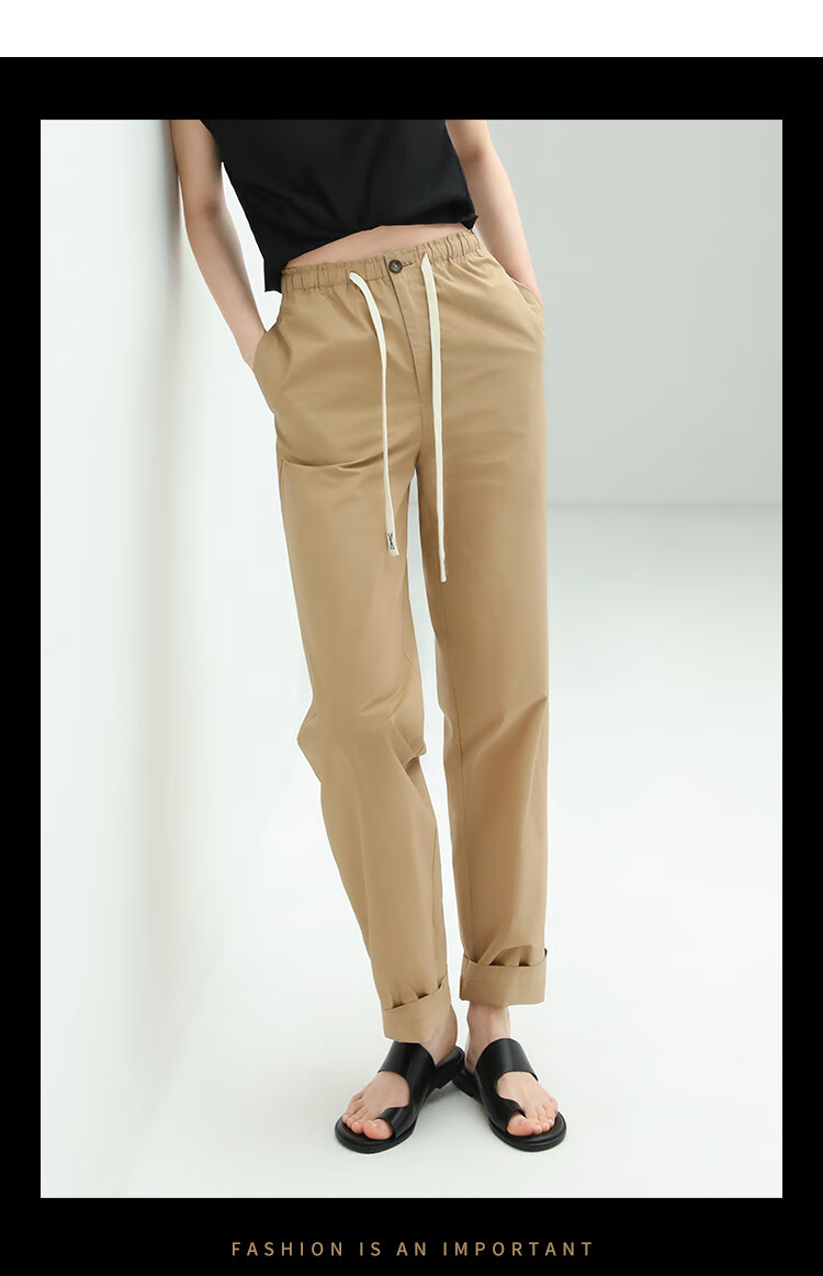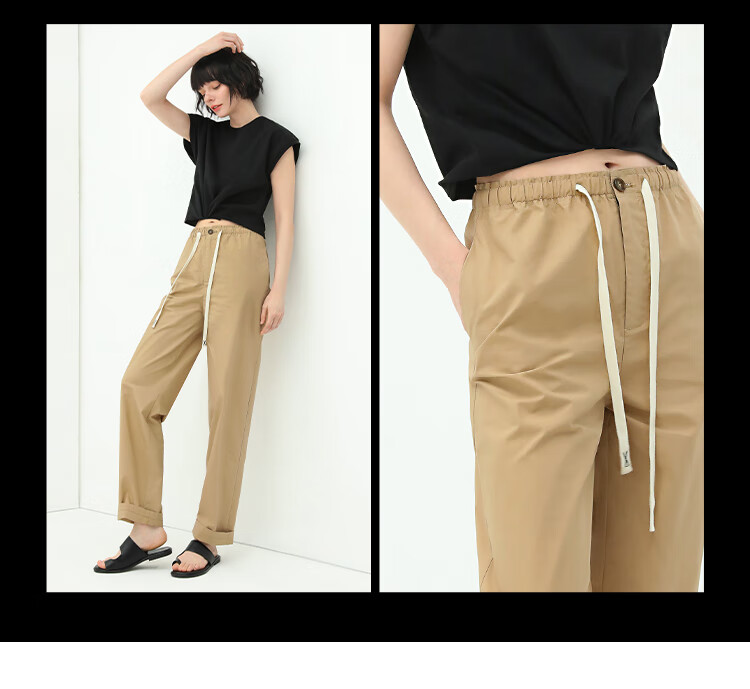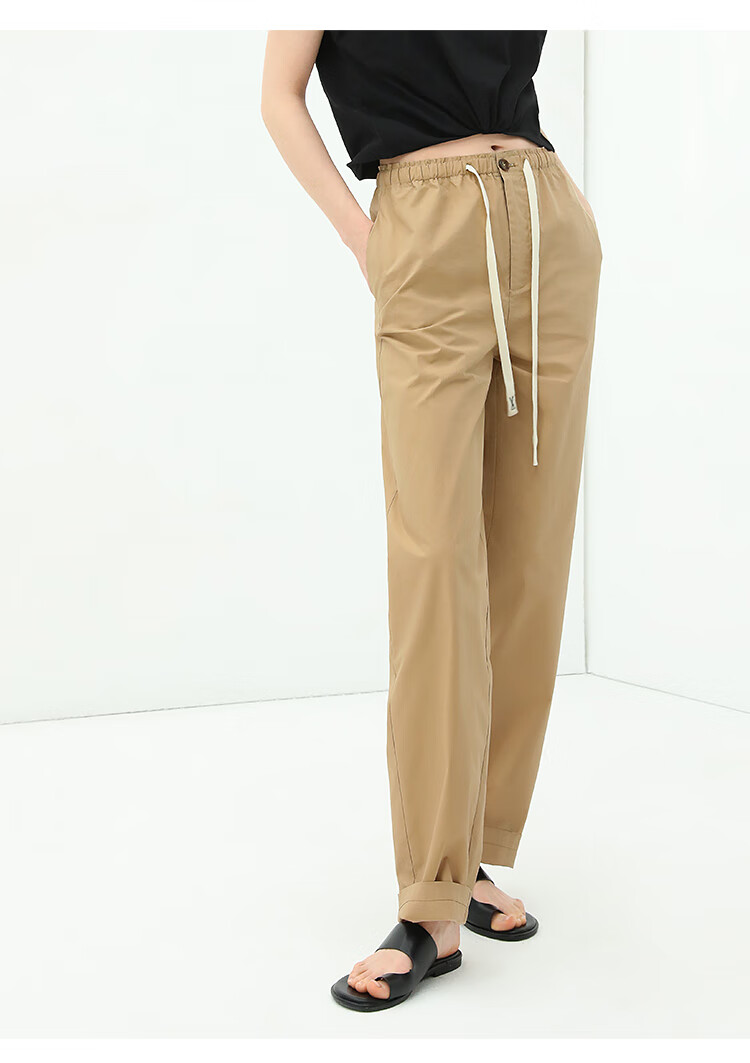 COCOBELLA撞色腰绳休闲凉爽工装裤女花苞腰哈伦裤NPA23