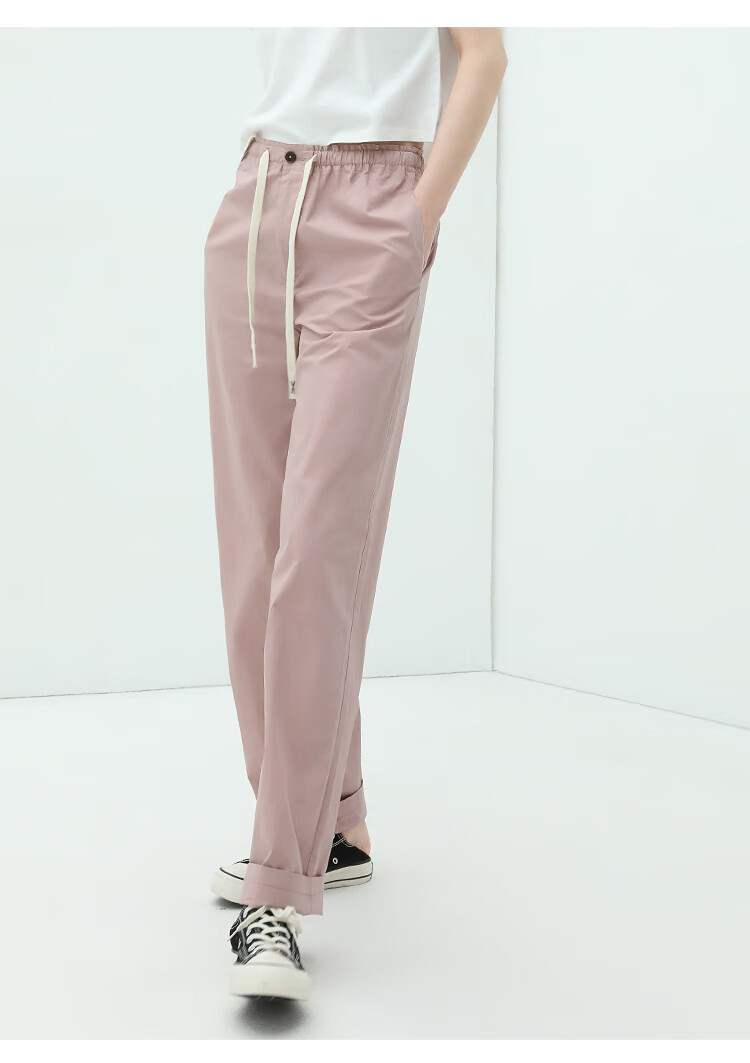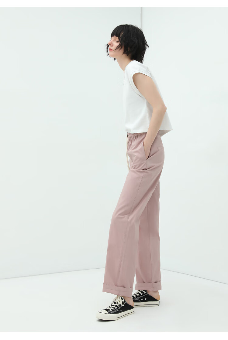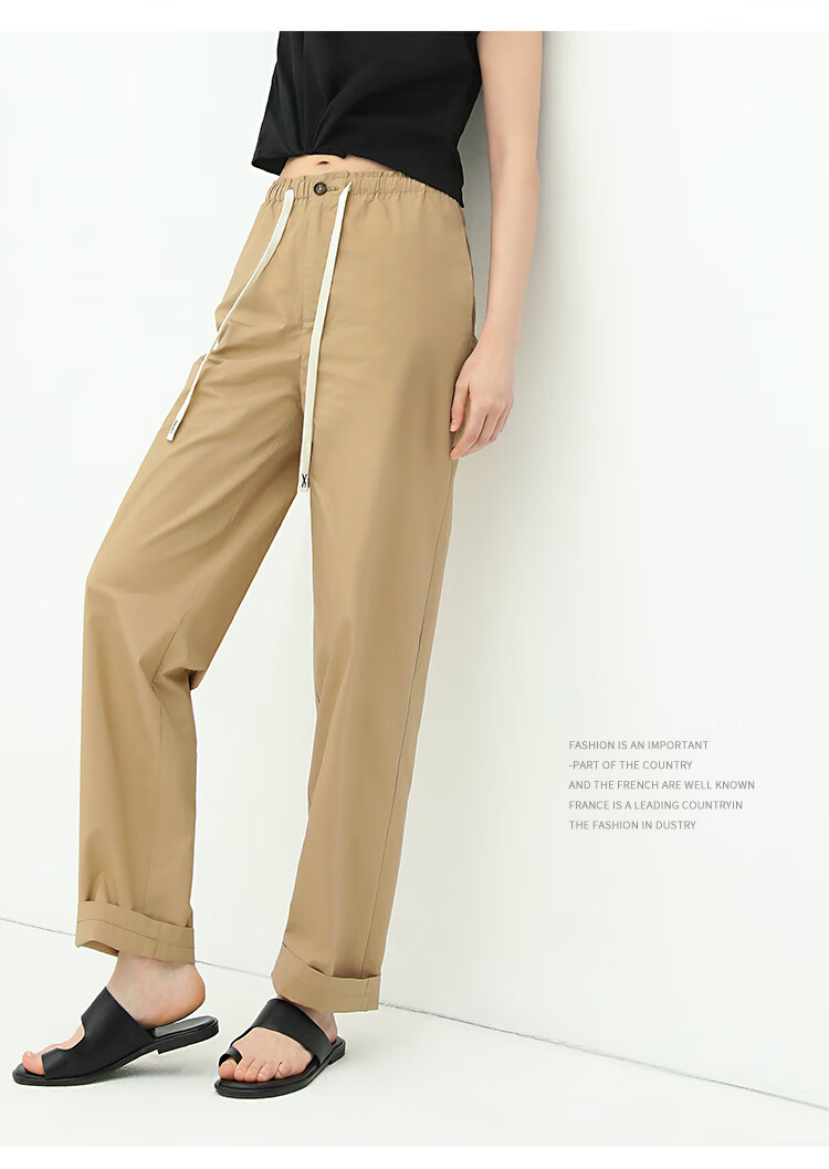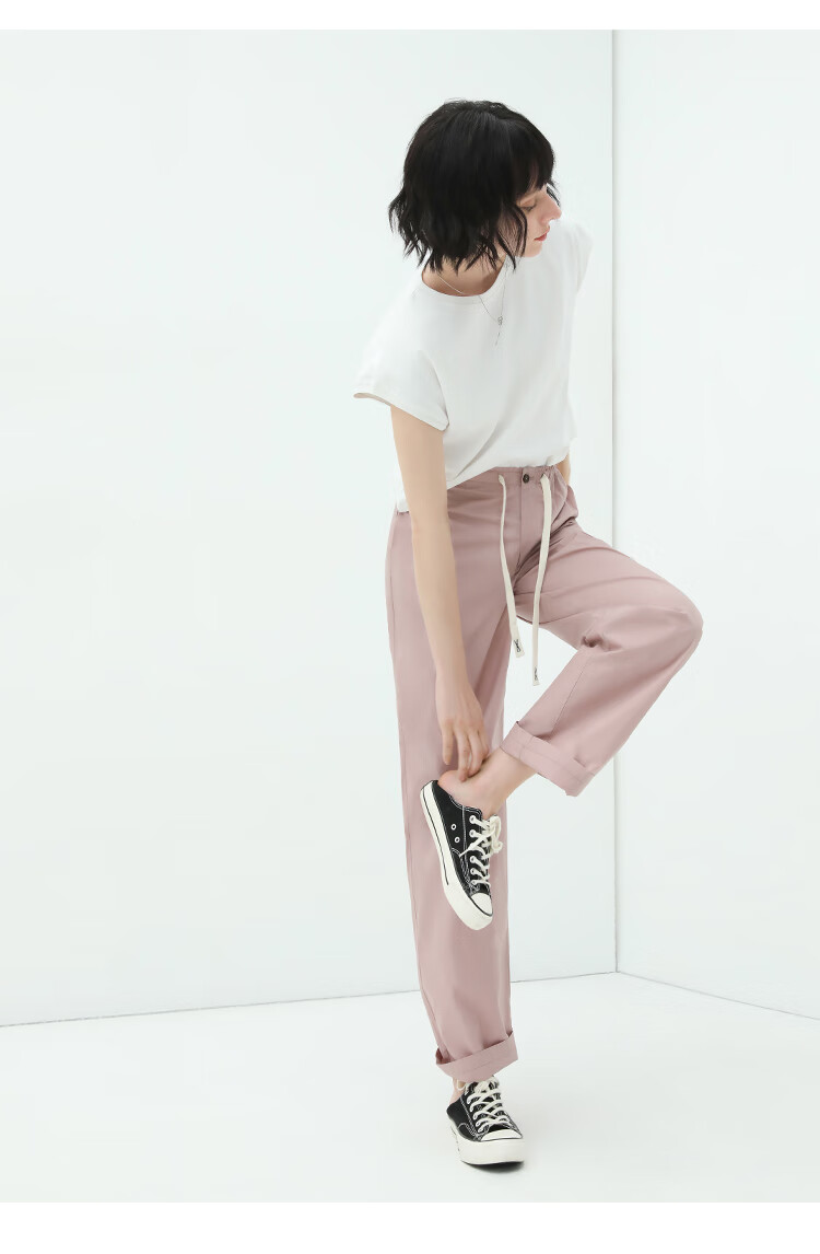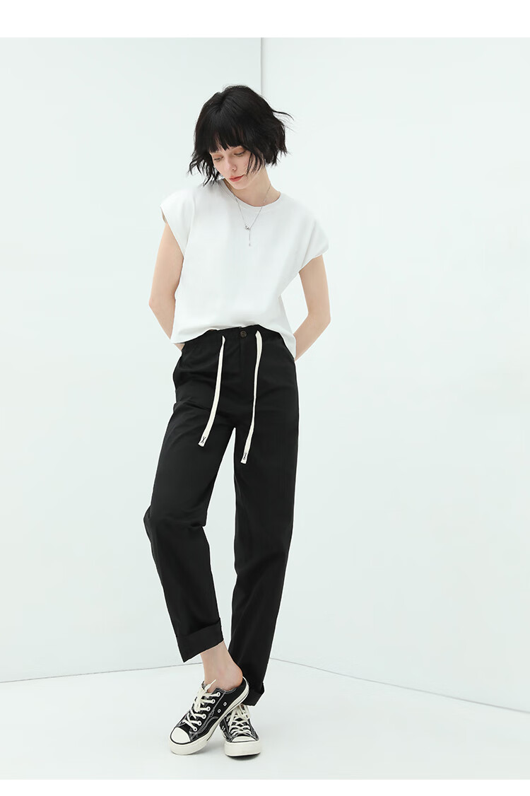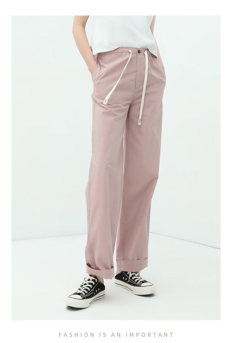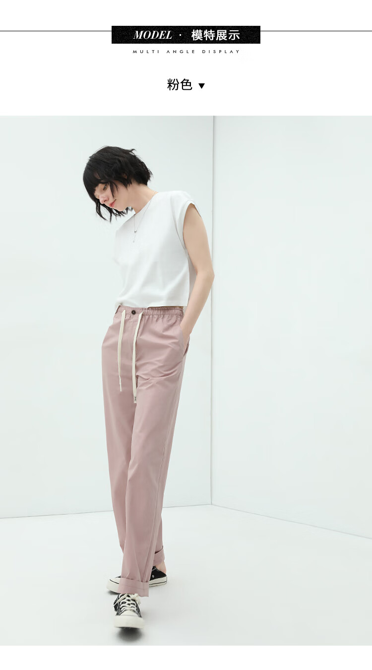 COCOBELLA撞色腰绳休闲凉爽工装裤女花苞腰哈伦裤NPA23